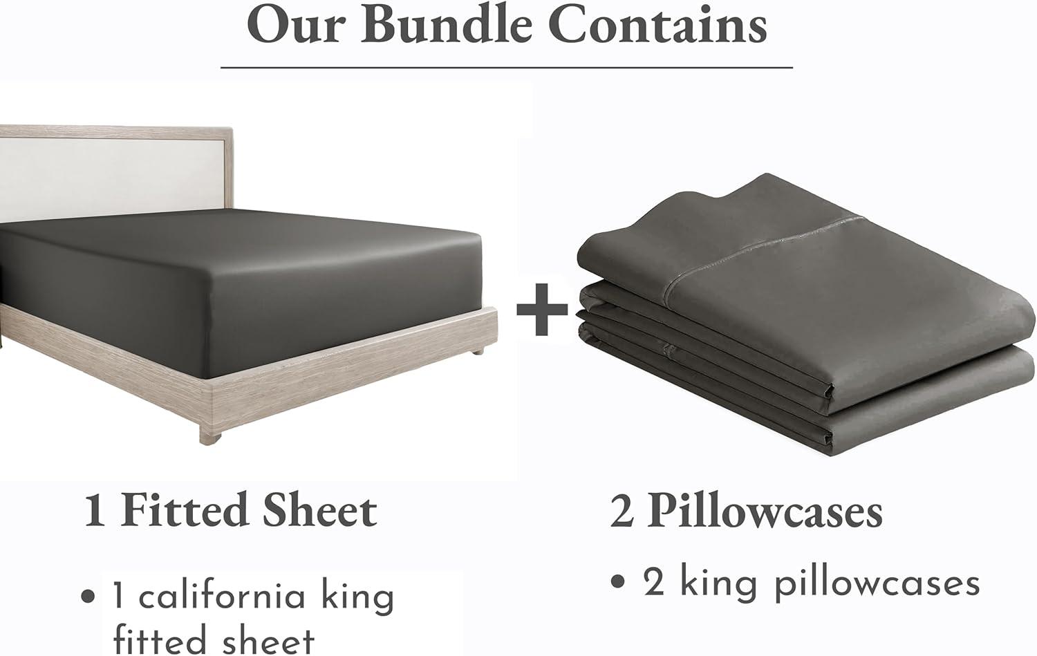 3-Piece Bundle - Fitted Sheet with 2 Pillowcases, 400 Thread Count 100% Cotton Sateen, Deep Pockets (Cal King Size, Grey)