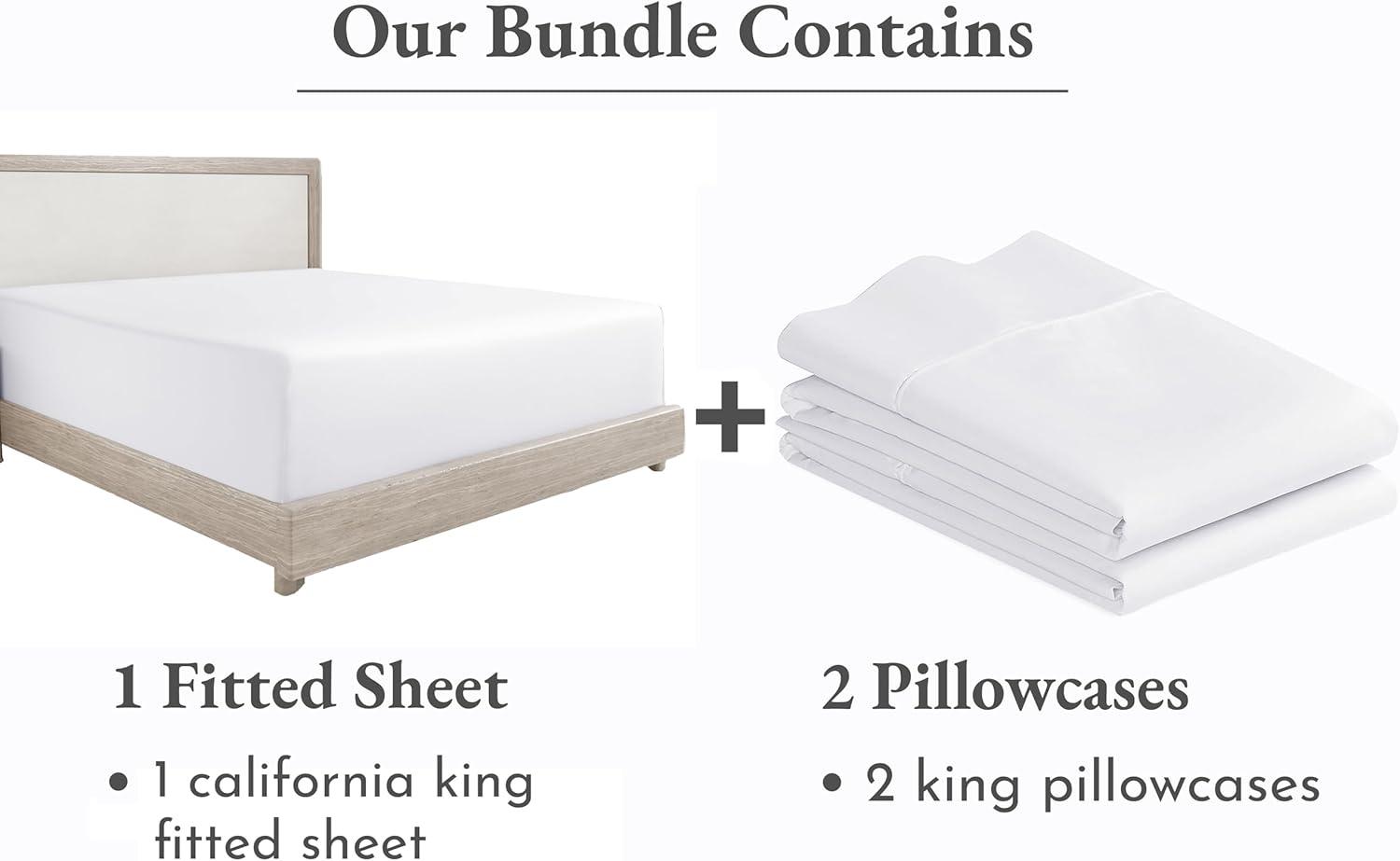 3-Piece Bundle - Fitted Sheet with 2 Pillowcases, 400 Thread Count 100% Cotton Sateen, Deep Pockets (Cal King Size, White)