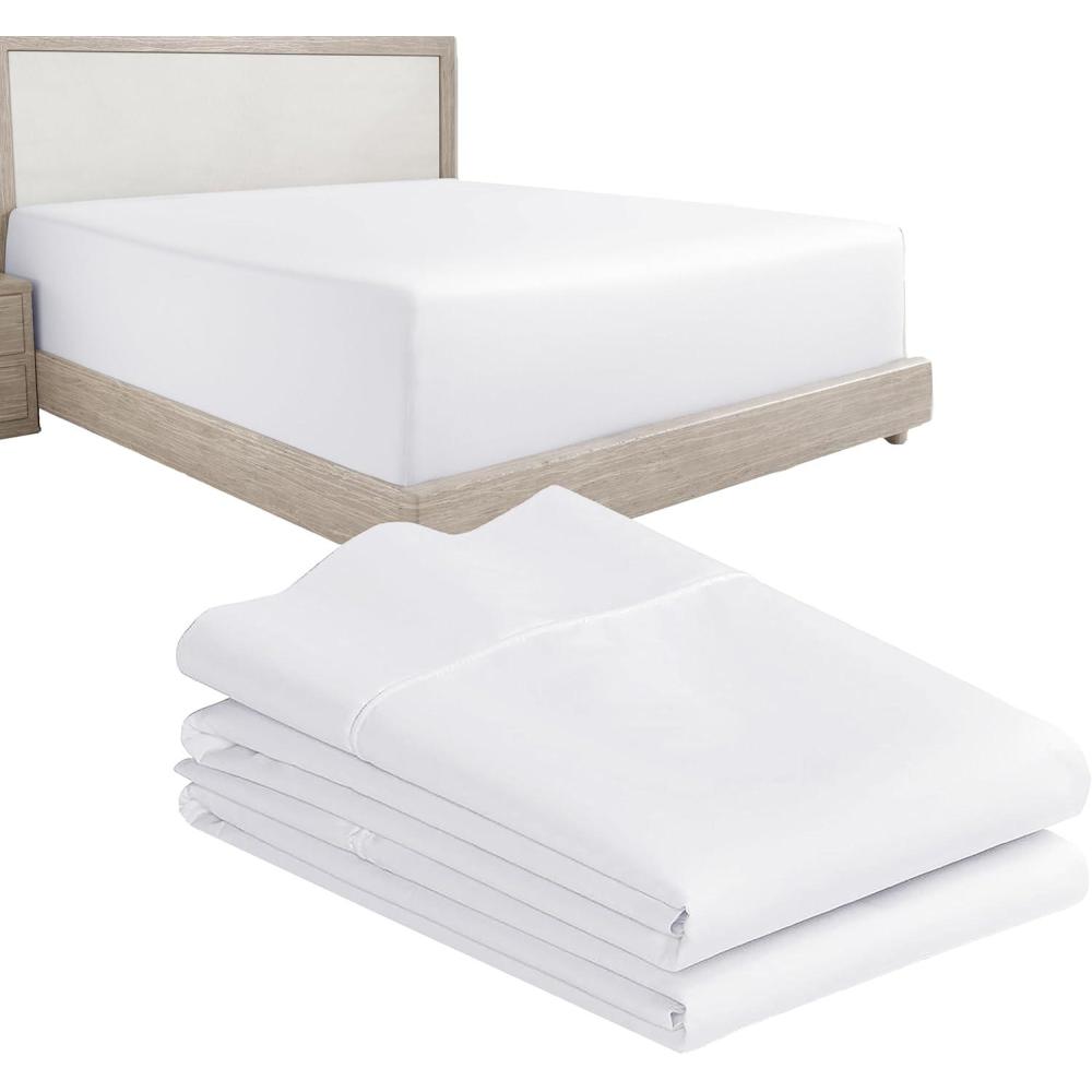 AUTHENTIC COTTON BEDDING: Experience luxurious comfort with our 400 thread count, 100% cotton sateen fitted sheet and pillowcase bundle that combines quality and functionality. The fitted sheet features an all-around elastic for a snug, secure fit, ensuring undisturbed sleep while the pillowcases have a 4-inch hem to keep your pillows in place.