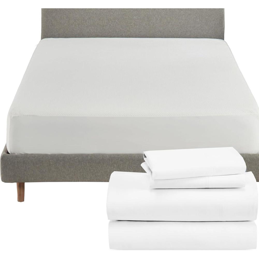 image5 Piece California King Size Sheet Set and Waterproof Mattress Protector Bundle  100 Organic Cotton Percale 4 Piece Sheet Set with 1 Mattress Protector White