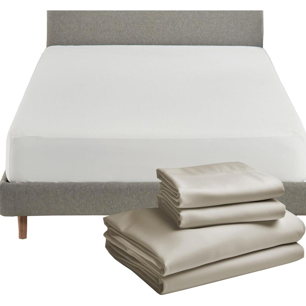 image5 Piece California King Size Sheet Set Beige and Waterproof Mattress Protector Bundle White  100 Egyptian Cotton Sateen 4 Piece Sheet Set with 1 Mattress Protector