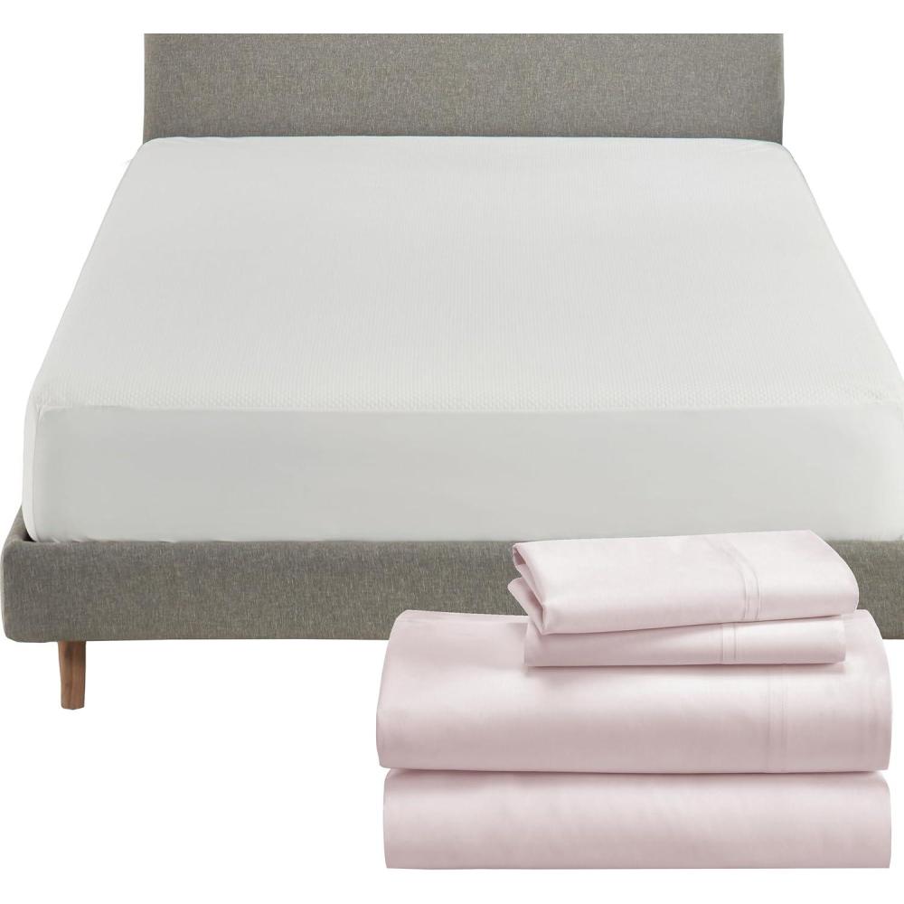 image5 Piece California King Size Sheet Set Blush Pink and Waterproof Mattress Protector White Bundle  600 Thread Count 100 Cotton Sateen 4 Piece Sheet Set with 1 Mattress Protector