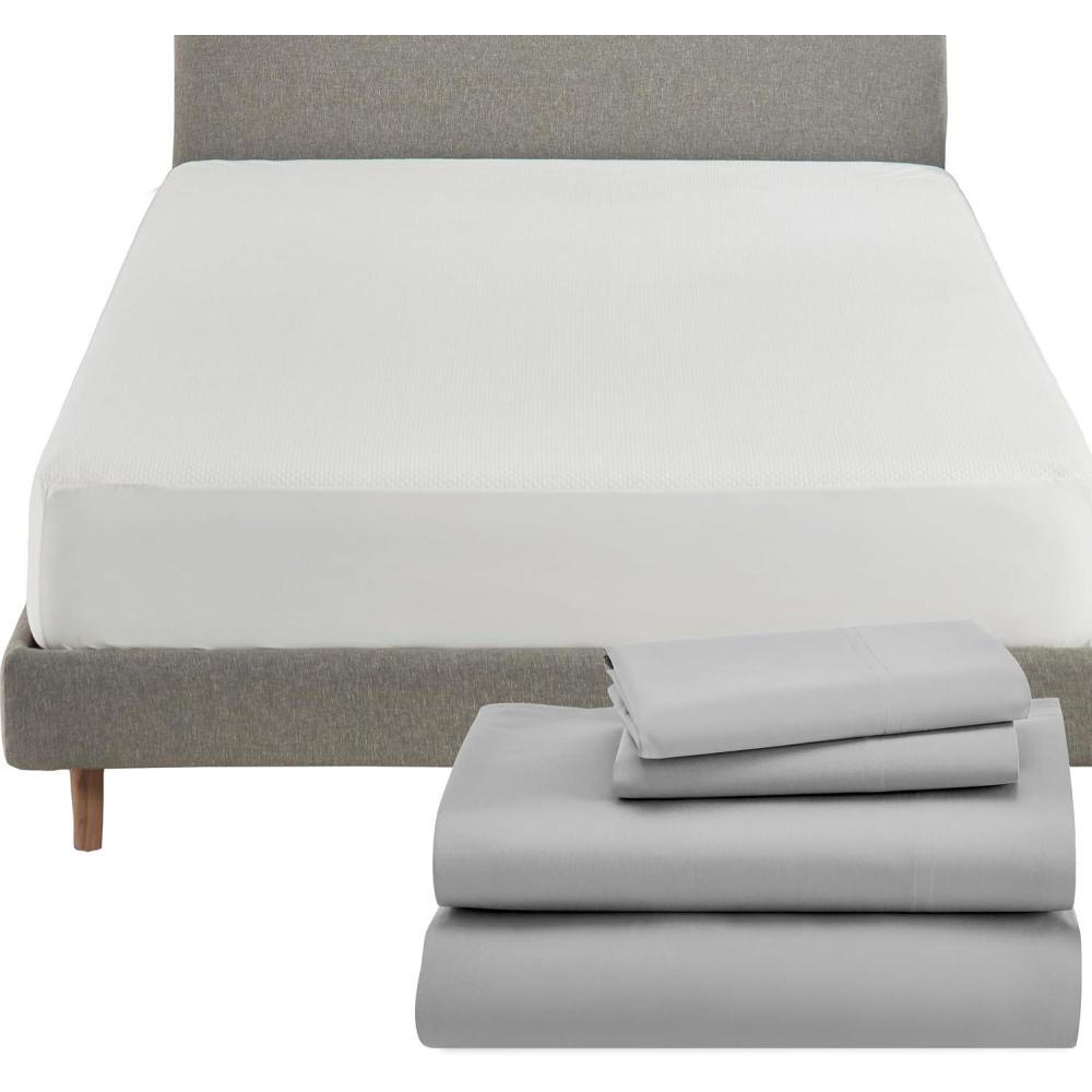 image5 Piece California King Size Sheet Set Light Grey and Waterproof Mattress Protector White Bundle  600 Thread Count 100 Cotton Sateen 4 Piece Sheet Set with 1 Mattress Protector