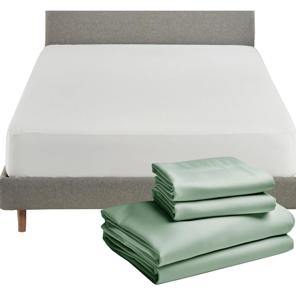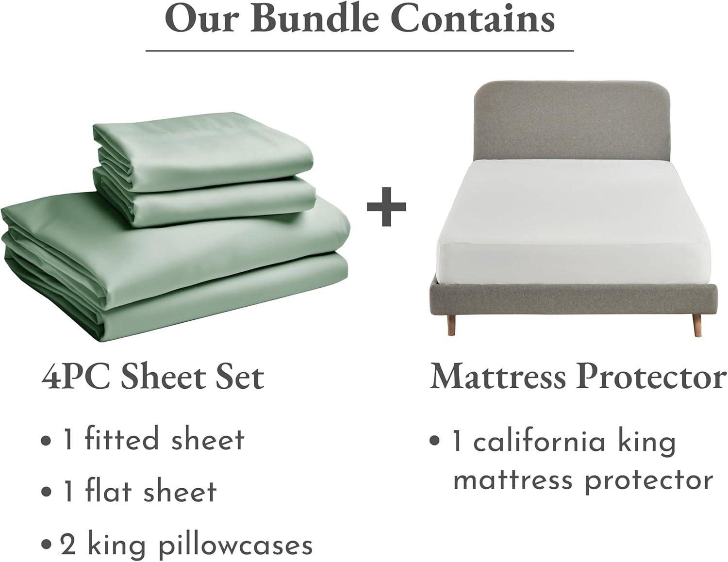 Transform your sleep experience with our premium California King size bedding bundle, combining the unmatched luxury of our 100% Egyptian Cotton Sheet Set with the convenience of our waterproof mattress protector. Designed to solve common bedding problems, this bundle offers superior comfort, quality, and durability. Our 100% Egyptian Cotton Sheet Set, a Good Housekeeping Best Bedding Awards winner, is crafted from the finest Egyptian cotton. These sheets are celebrated for their exceptional quality, unmatched softness, and natural cooling properties. This 4-piece california king sheet set includes a generously sized flat sheet, a deep pocket fitted sheet and two king pillowcases with an envelope closure. The fitted sheet features anti-skid elastic and head/foot side indicators for easy bed-making. These sheets are Oeko-Tex Standard 100 certified, ensuring they are free from harmful substances and safe for your health. Paired with our california king size waterproof mattress protector, this bundle ensures your mattress stays protected from spills and stains, providing a worry-free sleep environment. The mattress protector is soft, noiseless, breathable, and cooling, fitting snugly on mattresses 8 to 20 inches deep without slipping or bunching. Made from high-quality materials, it is durable, long-lasting, and machine washable for easy care. In addition to providing superior comfort and protection, our products are socially responsible. In 2022 and 2023, we donated over 22,000 pieces of bedding to local charities in the USA and use eco-friendly packaging. Our family-owned and operated factory in India ensures each piece is inspected for quality, and we promise to replace any defective products at no cost to you.
