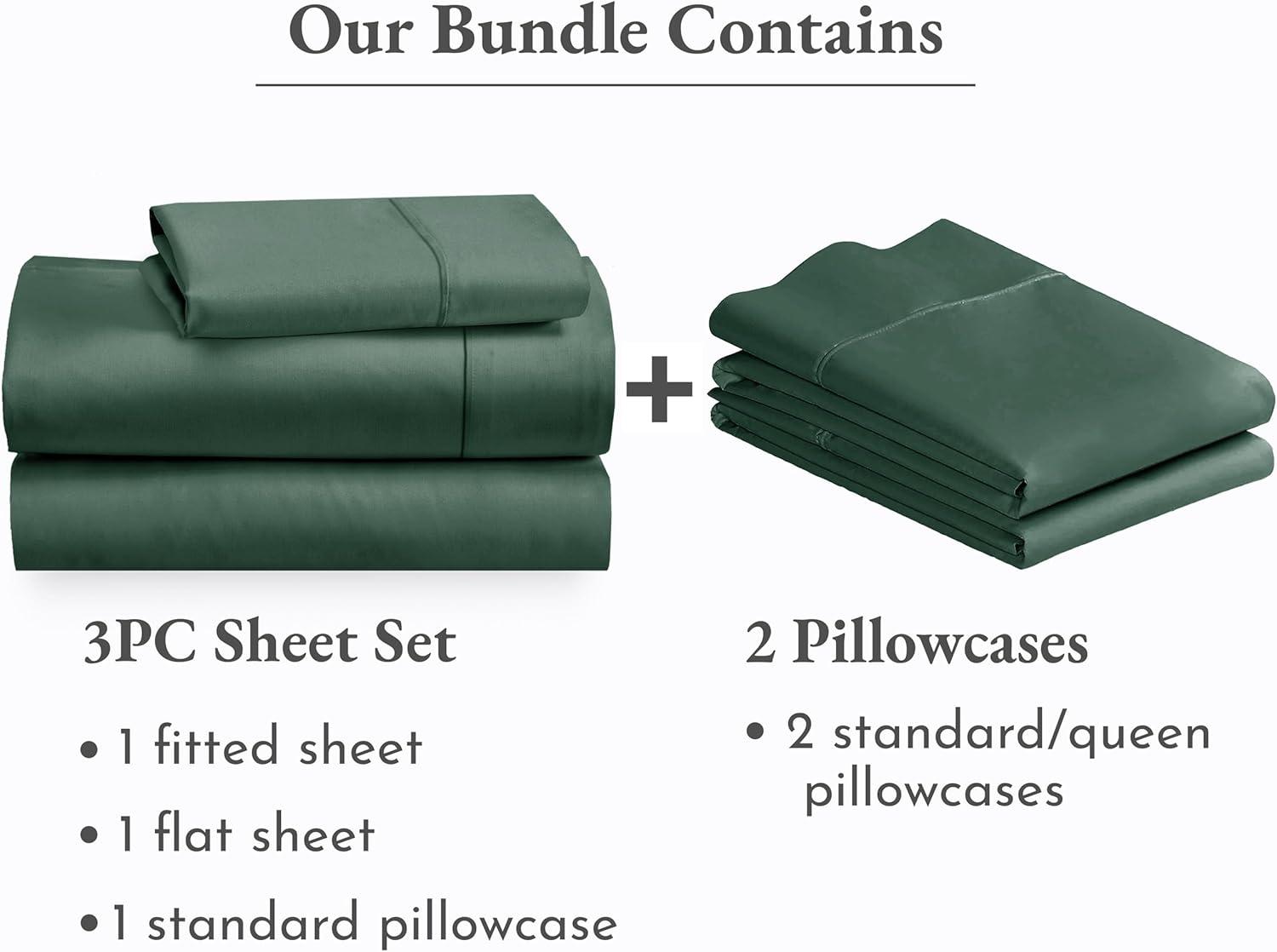 5 Piece Twin Size Sheet Set with 3 Pillowcases, 400 Thread Count 100% Cotton Sateen (Hunter Green)