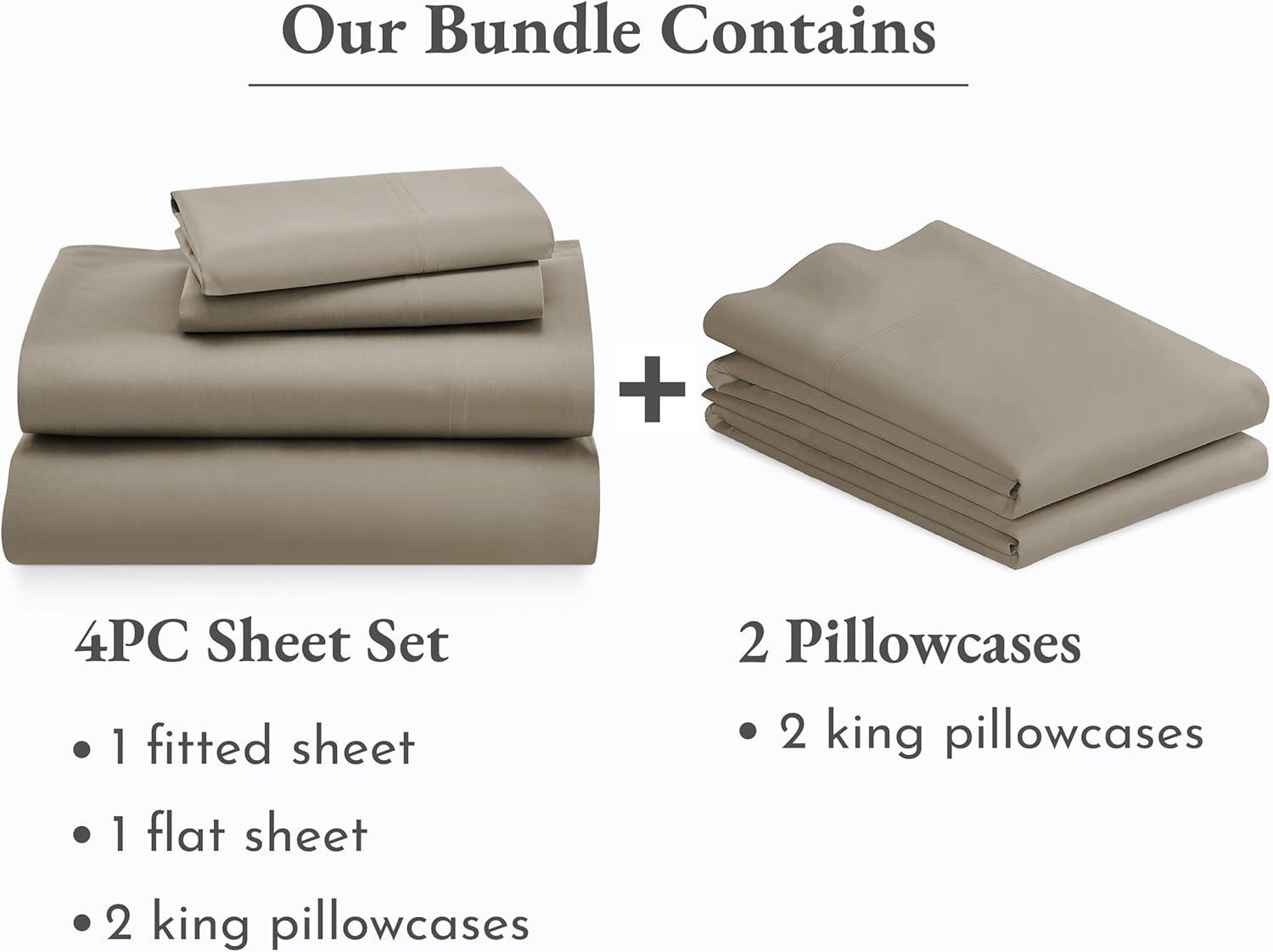 image6 Piece California King Size Sheet Set with 4 Pillowcases 600 Thread Count 100 Cotton Sateen Cool Taupe
