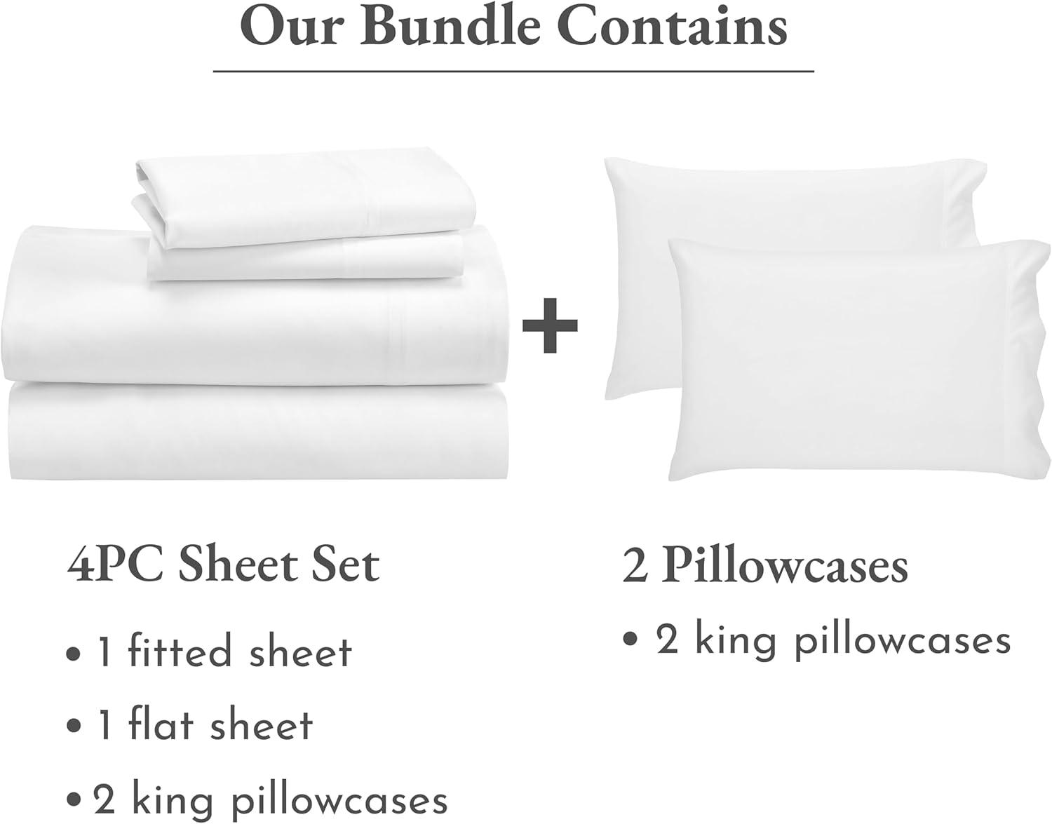 “Transform your bedroom into a sanctuary of luxury and comfort with our 600-Thread Count Cal King Sheet Set and King Pillowcases bundle. Crafted from certified 100% cotton sateen, these sheets offer a soft, cooling touch that mirrors a five-star hotel experience, perfect for all seasons. This bundle includes a Cal King sheet set with a flat sheet, an extra deep pocket fitted sheet, and 4 spacious king pillowcases, all designed to fit perfectly and provide easy bed-making with durable elastic and clear indicators. The premium cotton fabric is not only gentle on your skin but also helps regulate body temperature, ensuring a restful sleep. Ideal for those who value health and environmental sustainability, our products are tested for harmful substances and certified by Oeko-Tex Standard 100, with no plastic used in packaging. Durable and easy to care for, these sheets withstand pilling, fading, and shrinking, getting softer with each wash. Ideal for environmentally conscious consumers who do not compromise on quality and comfort, this bundle ensures a luxurious, restful sleeping environment night after night. Embrace a superior sleeping experience with our family-produced, sustainable luxury bedding.”
