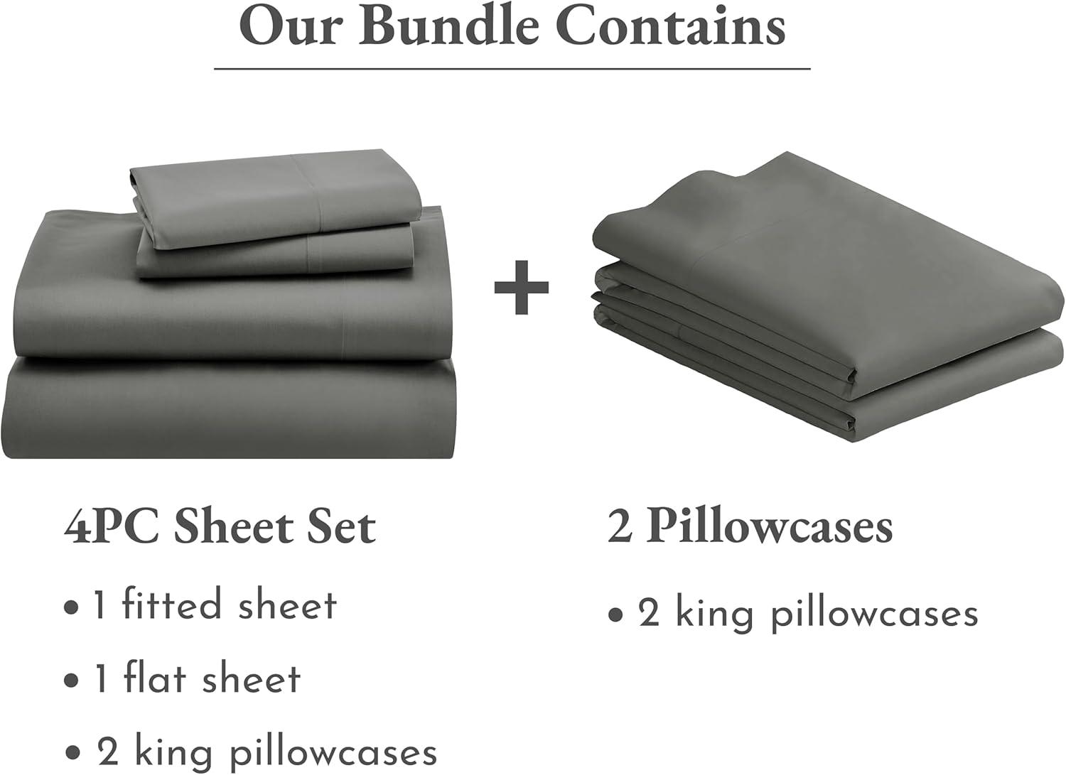 What's Included in This 6 Piece King size Bedding Bundle: 1 flat sheet (112″W x 102″L), 1 bottom fitted sheet (78″W X 80″L) with all around elastic (fits 8″ to 16″ mattresses) and 4 king size pillowcases (21″W x 41″L) to fit king size pillows.