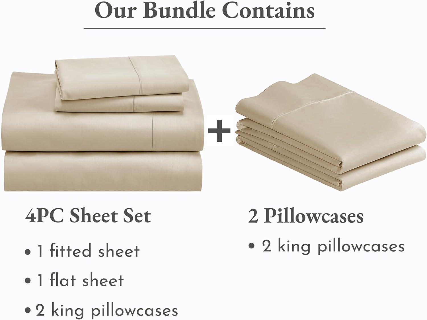 6 Piece King Size Sheet Set with 4 Pillowcases, 400 Thread Count 100% Cotton Sateen (Golden Beige)