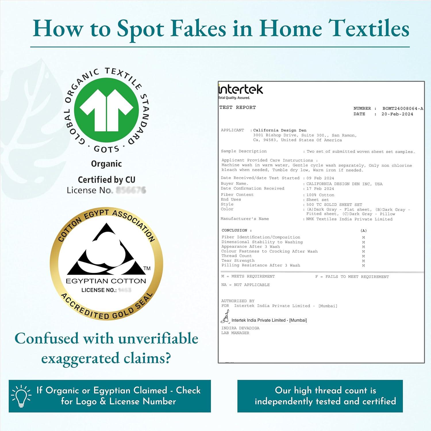 imageCalifornia Design Den Bedding Bundle  Split King Sheet Set with 4 Pillowcases 500 Thread Count 100 Cotton Sateen Light Grey