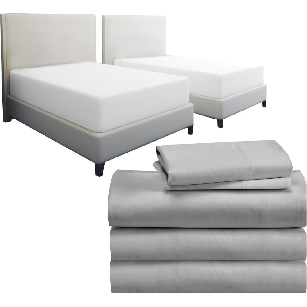 Be the first to review “7 Piece Split King Sheet Set Size Sheet Set (Light Grey) and Waterproof Mattress Protector (White) Bundle – 500 Thread Count 100% Cotton Sateen, 5 Piece Sheet Set with 2 Mattress Protectors”
