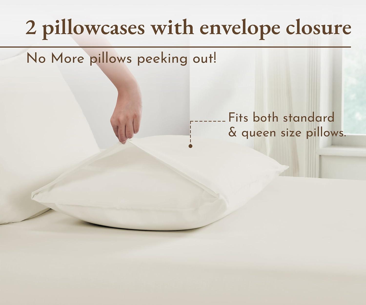 California Design Den 100% Organic Cotton Pillow Cases Queen/Standard Set of 2, Soft & Cooling Percale Weave Cotton Pillowcases (Bright White)(02 - Ivory (Cream Tone))