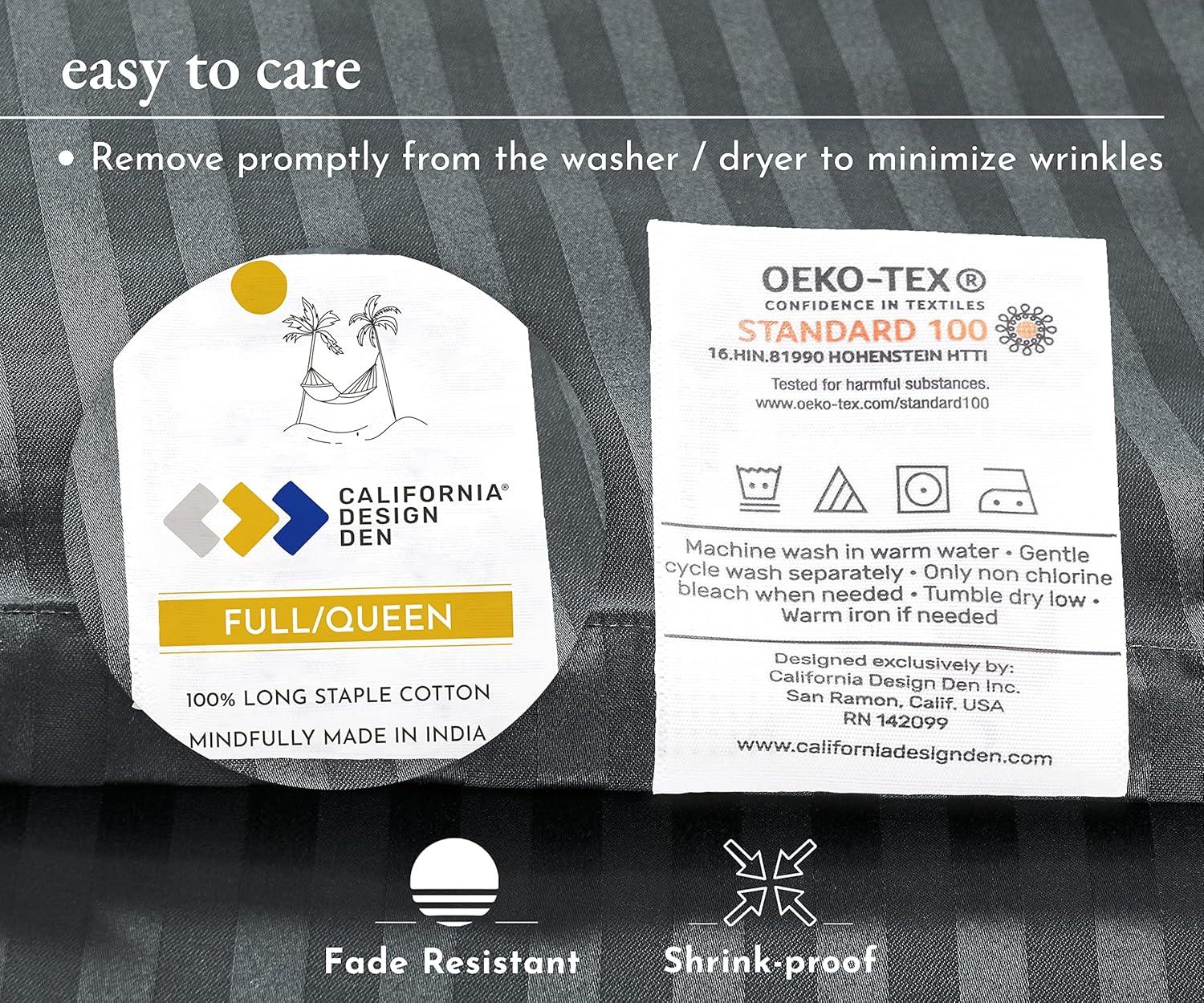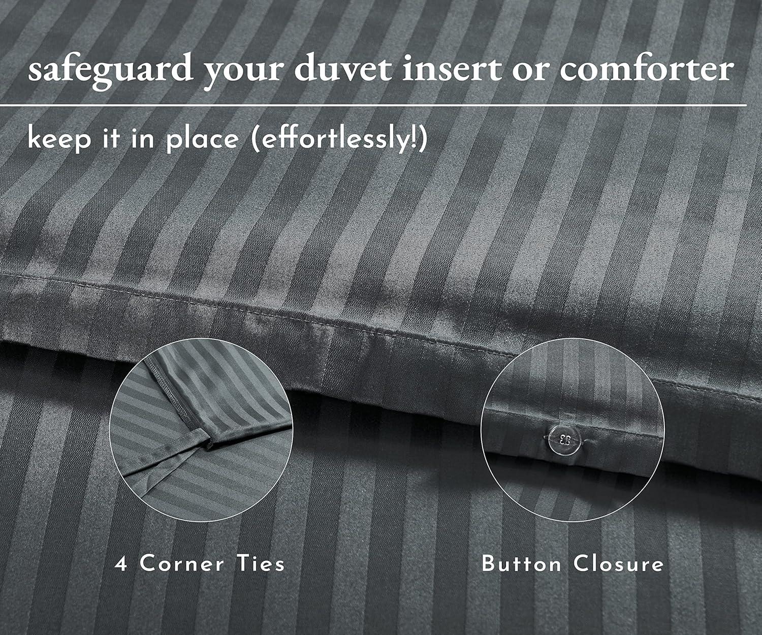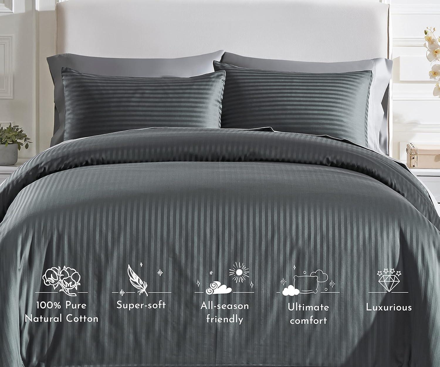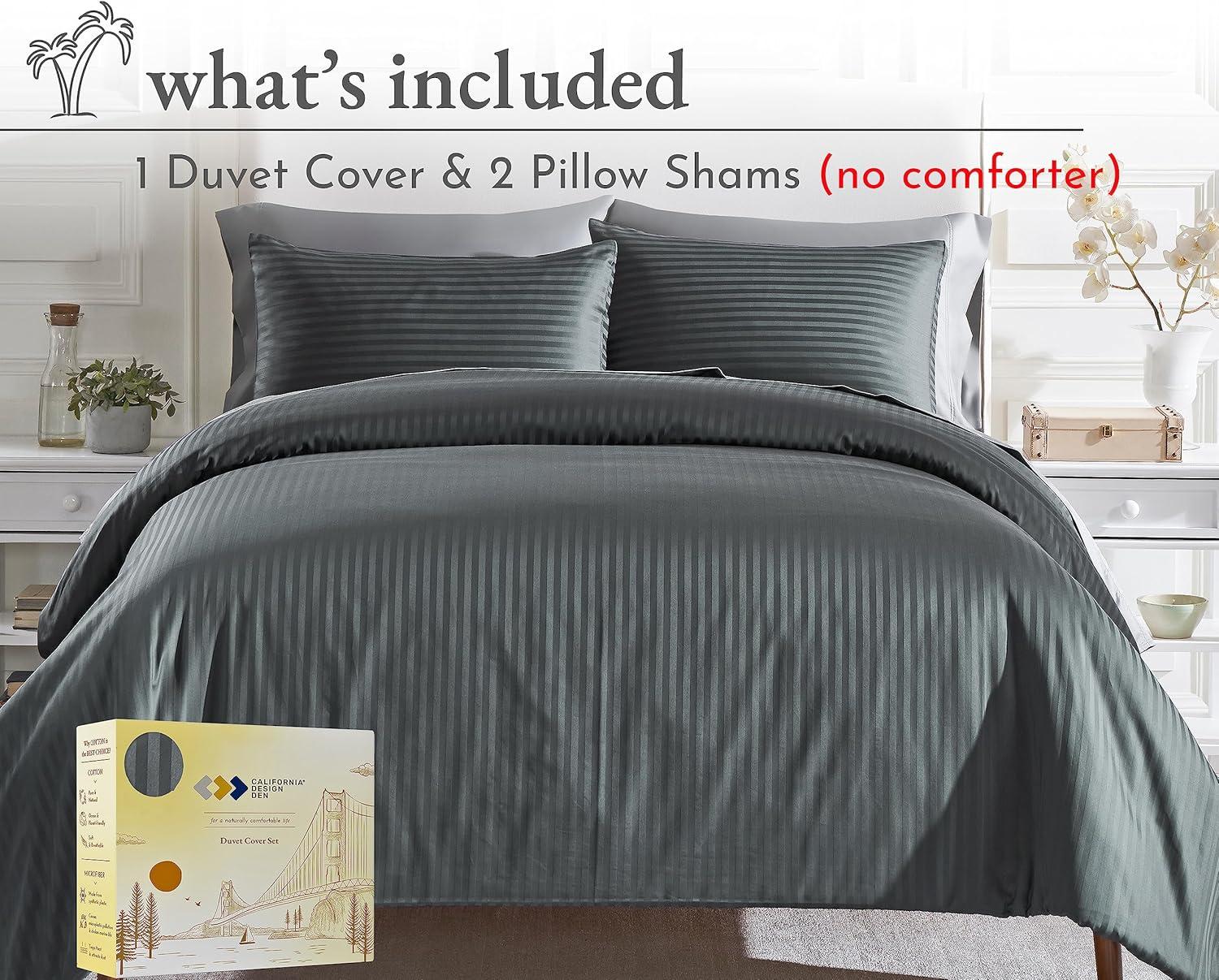 California Design Den 3 Pc White King Duvet Cover Set – Winner Good Housekeeping Best Bedding Awards 2025, 400 Thread Count Sateen, 100% Cotton Duvet Cover Set, Button Closure, Corner Ties – White(49 – Striped Gray)