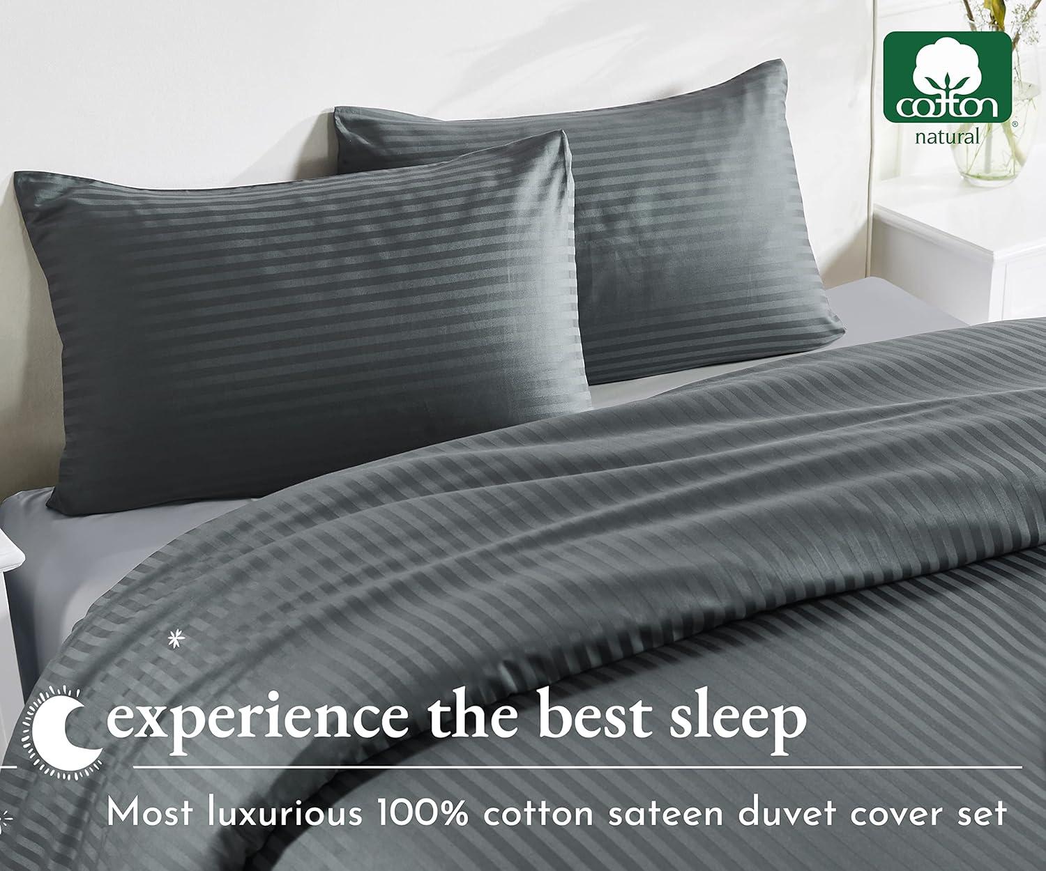 THE LOOK: Imagine your bed looking like a luxurious hotel room with our duvet cover set king size. Our cotton sateen fabric has a beautiful sheen and hardly wrinkles giving it a crisp and elegant look. Complete the set with matching bed sheets available in the same fabric and color.