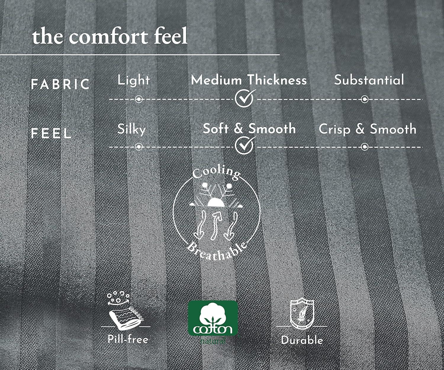 OUR COMMITMENT: We prioritize comfort, community, and sustainability. Since 2022, we've donated over 36,000 bedding items to US charities and removed plastic from our packaging. Sheets are crafted in our family‑owned factory in India with care and quality‑checked—thread count may vary by ±5% due to standard manufacturing limits. Enjoy affordable luxury and hassle‑free returns for a better night’s sleep.