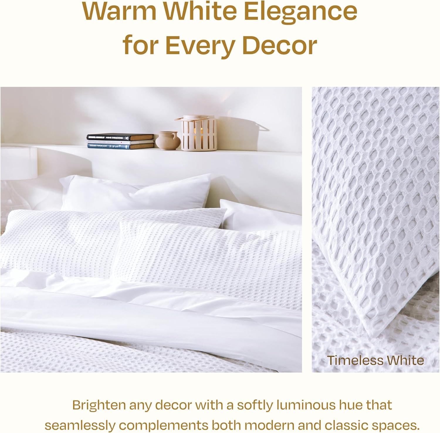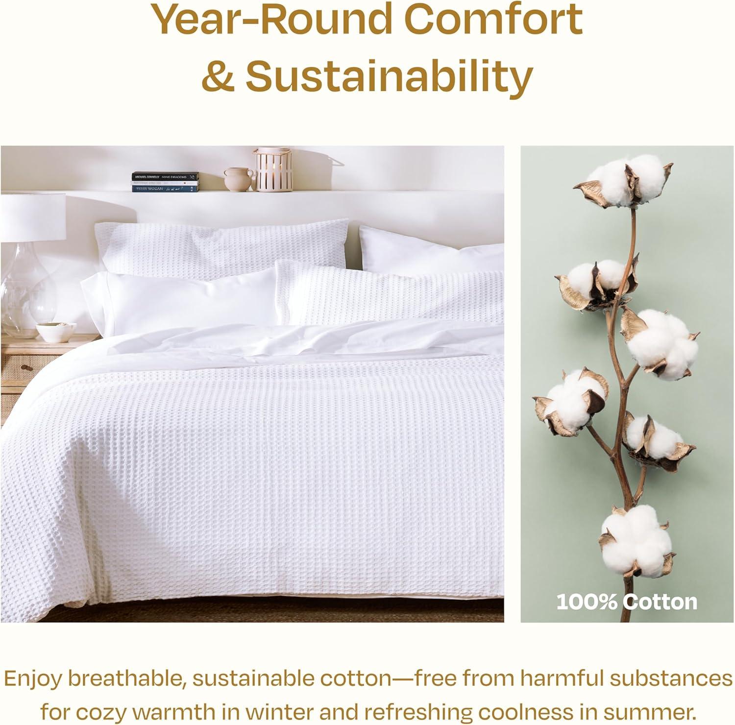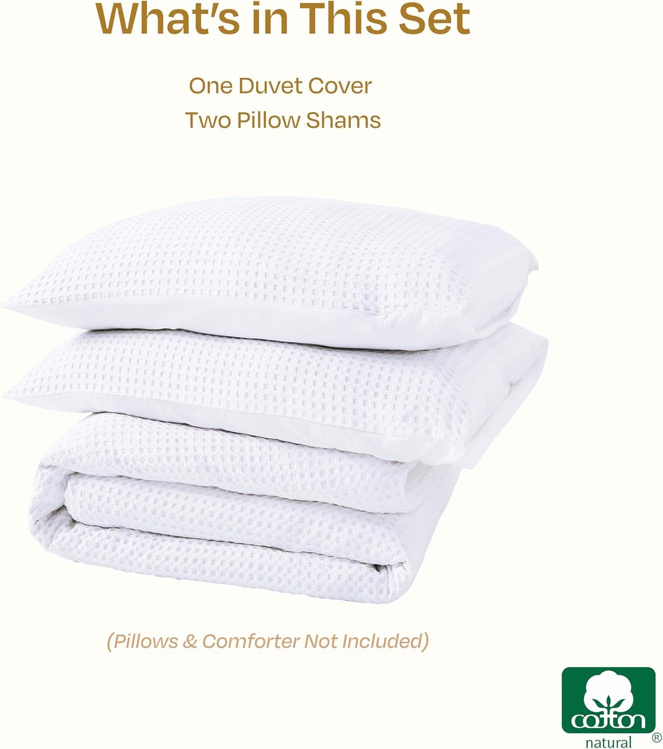 California Design Den 3 Pc White King Duvet Cover Set - Winner Good Housekeeping Best Bedding Awards 2025, 400 Thread Count Sateen, 100% Cotton Duvet Cover Set, Button Closure, Corner Ties - White(White Waffle)