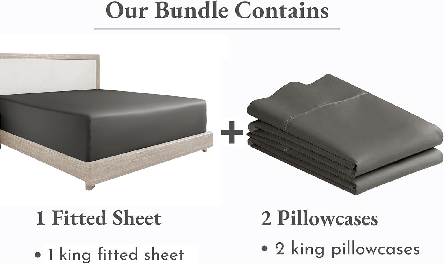 imageCalifornia Design Den 3Piece Bundle  Fitted Sheet with 2 Pillowcases 400 Thread Count 100 Cotton Sateen Deep Pockets King Size Grey