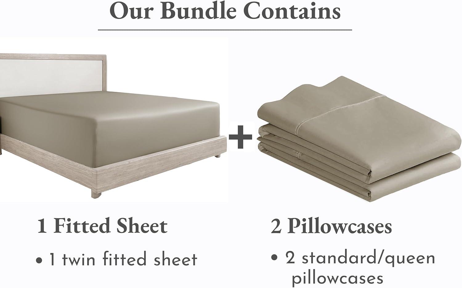California Design Den 3-Piece Bundle – Fitted Sheet with 2 Pillowcases, 400 Thread Count 100% Cotton Sateen, Deep Pockets (Twin Size, Taupe)