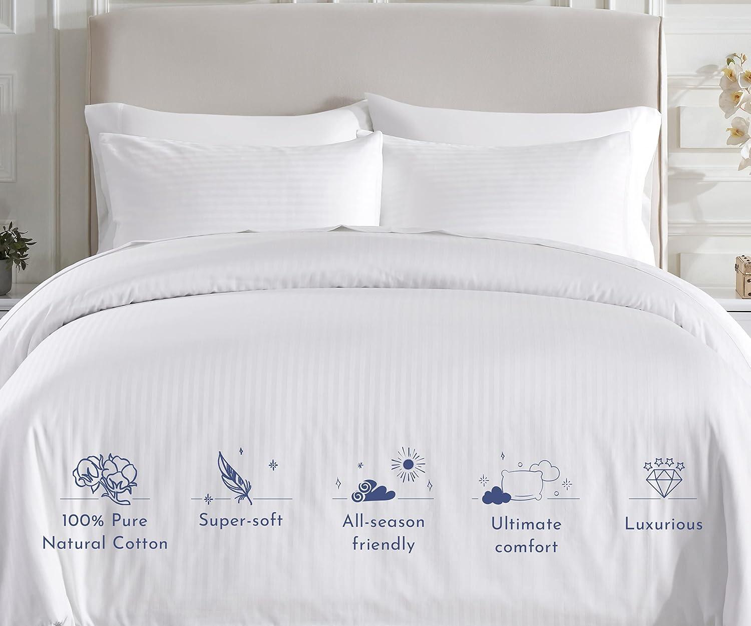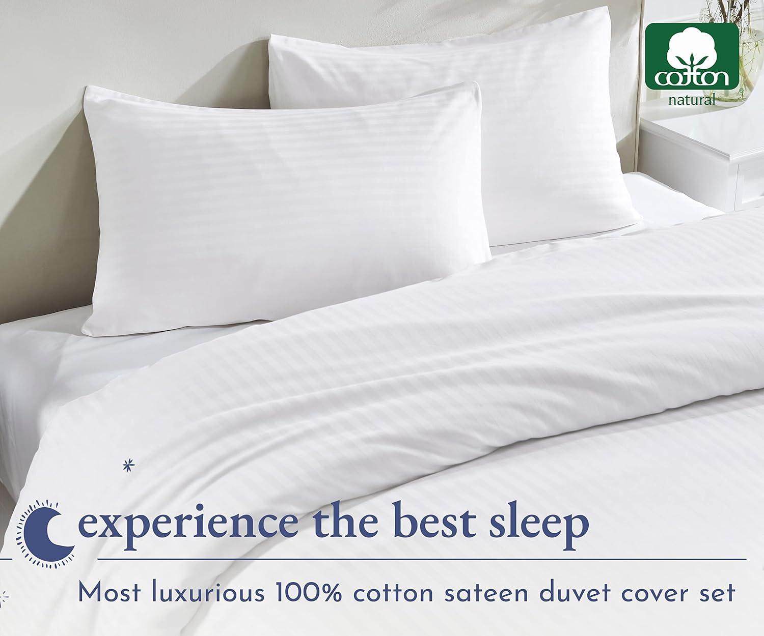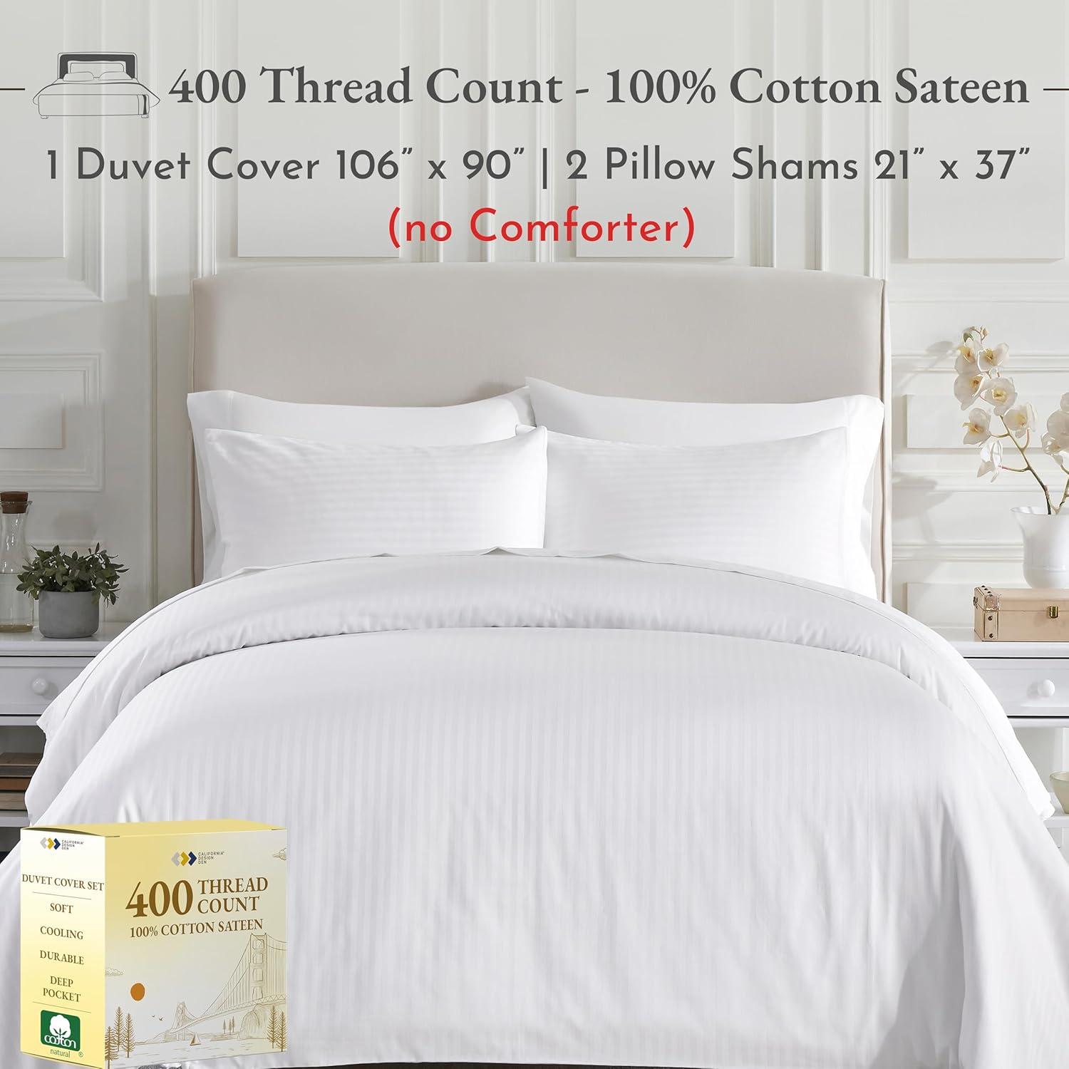 California Design Den 3 Piece King Size Duvet Cover – 100% Cotton Sateen, 400 Thread Count Soft Luxury Sateen Weave Comforter Cover, Two Pillow Shams, Button Closure and Corner Ties – Sand Band Hotel(01 – White)