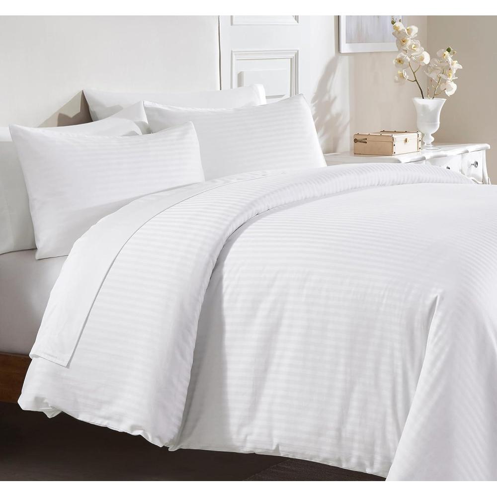 imageCalifornia Design Den 3 Piece King Size Duvet Cover  100 Cotton Sateen 400 Thread Count Soft Luxury Sateen Weave Comforter Cover Two Pillow Shams Button Closure and Corner Ties  Sand Band Hotel02  Striped White