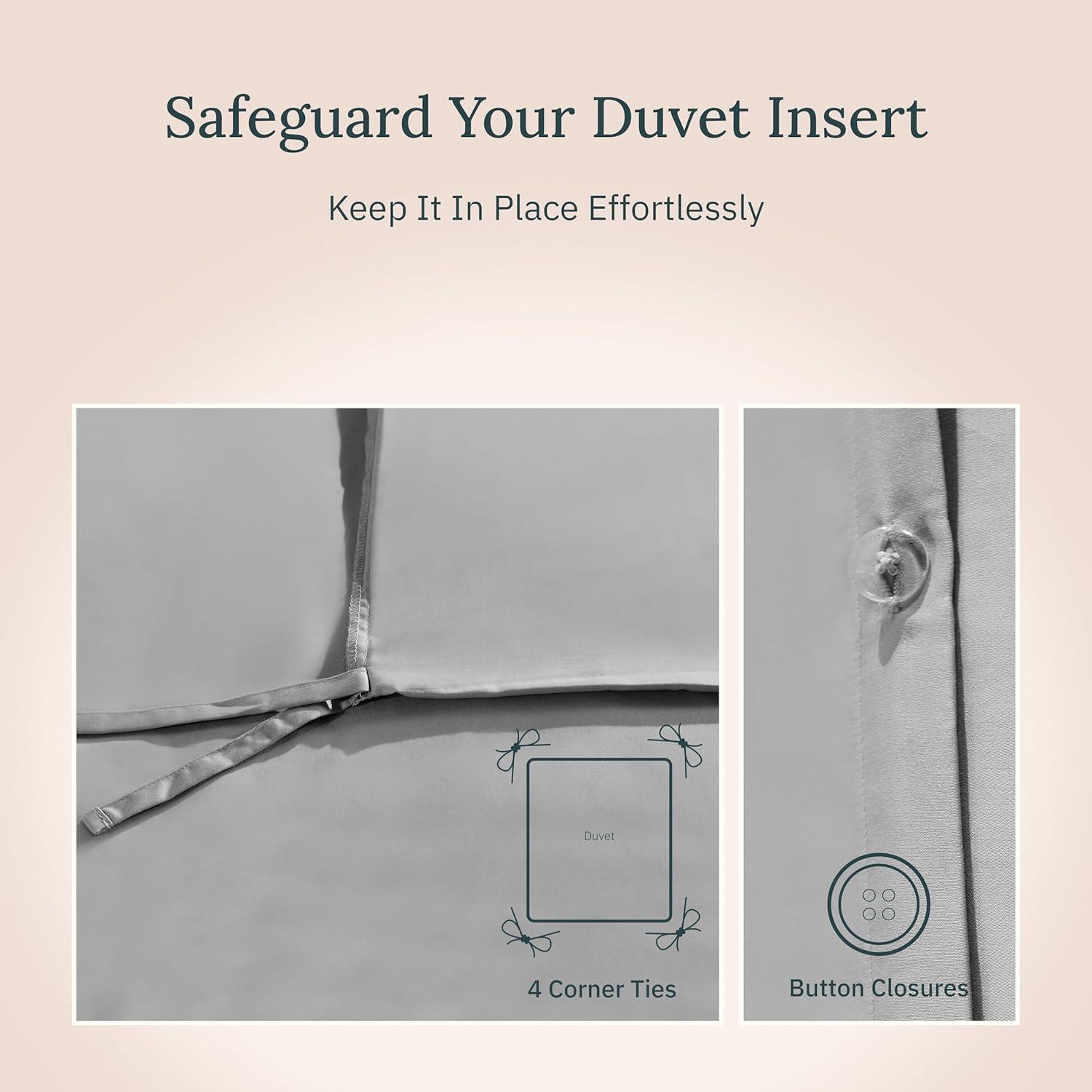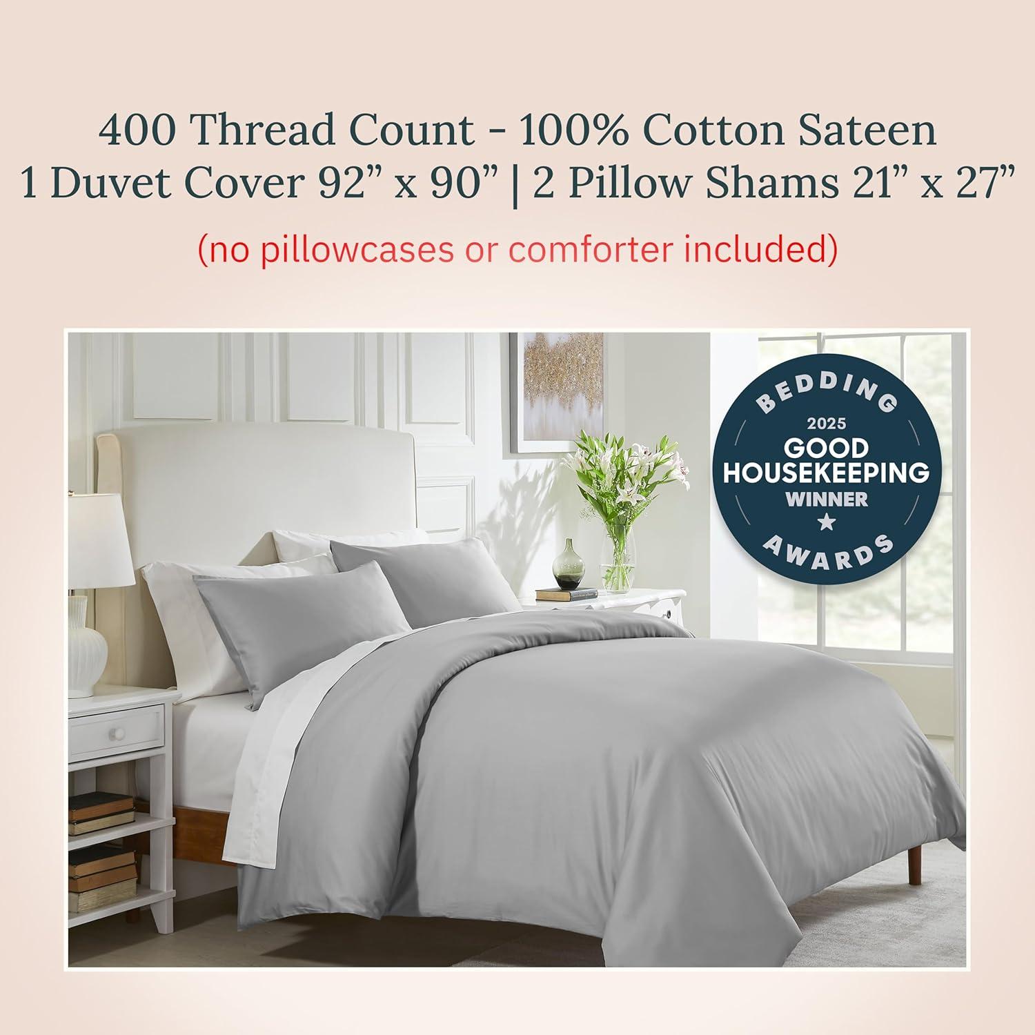imageCalifornia Design Den 3 Piece King Size Duvet Cover  100 Cotton Sateen 400 Thread Count Soft Luxury Sateen Weave Comforter Cover Two Pillow Shams Button Closure and Corner Ties  Sand Band Hotel06  Grey Light