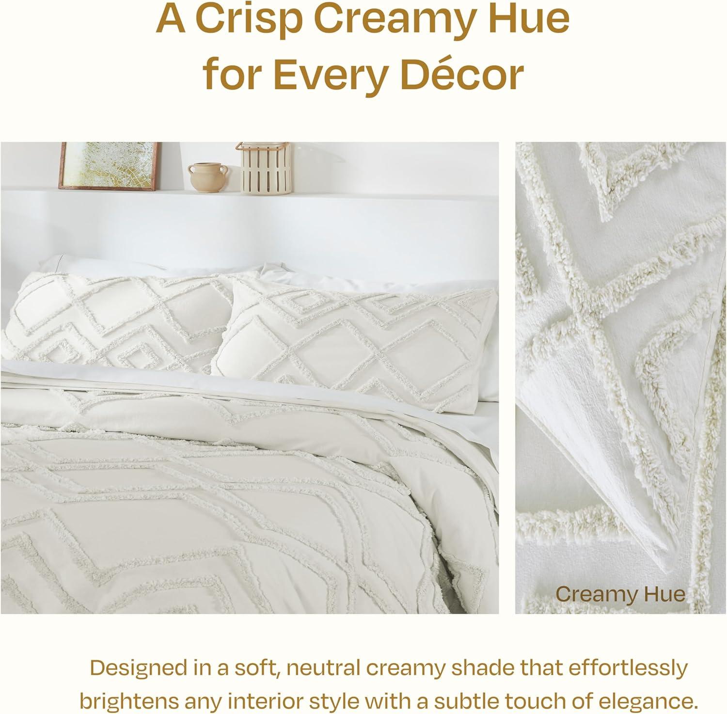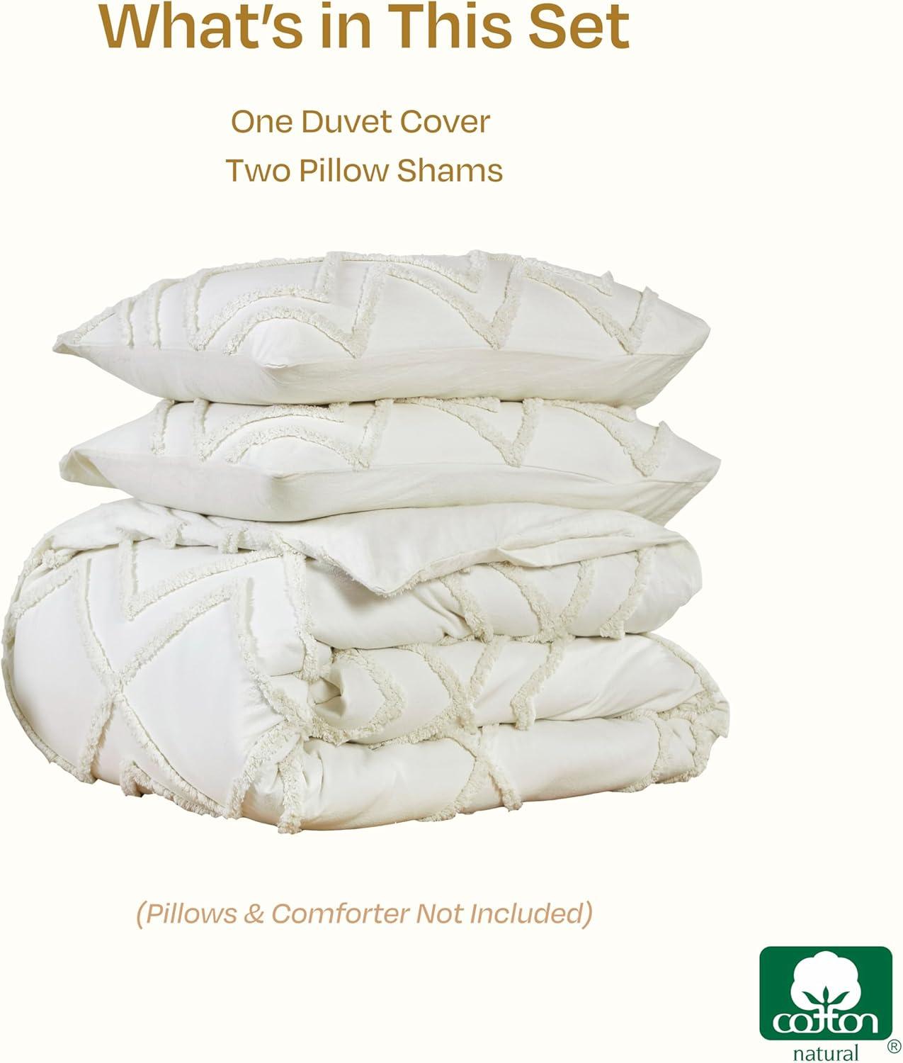 California Design Den 3 Piece King Size Duvet Cover - 100% Cotton Sateen, 400 Thread Count Soft Luxury Sateen Weave Comforter Cover, Two Pillow Shams, Button Closure and Corner Ties - Sand Band Hotel(Cream Boho Tufted)