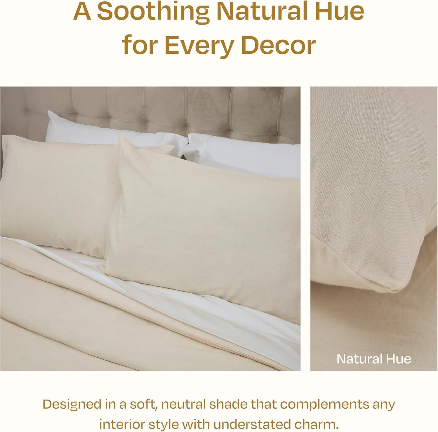California Design Den 3 Piece King Size Duvet Cover - 100% Cotton Sateen, 400 Thread Count Soft Luxury Sateen Weave Comforter Cover, Two Pillow Shams, Button Closure and Corner Ties - Sand Band Hotel(Linen - Natural)