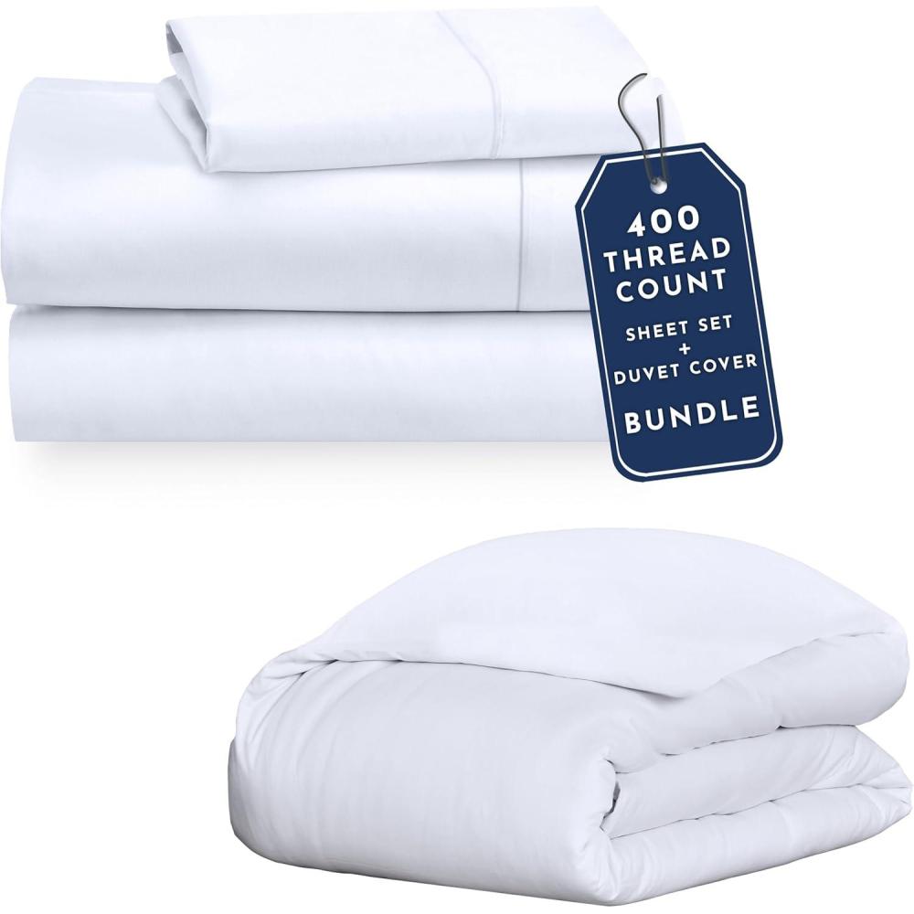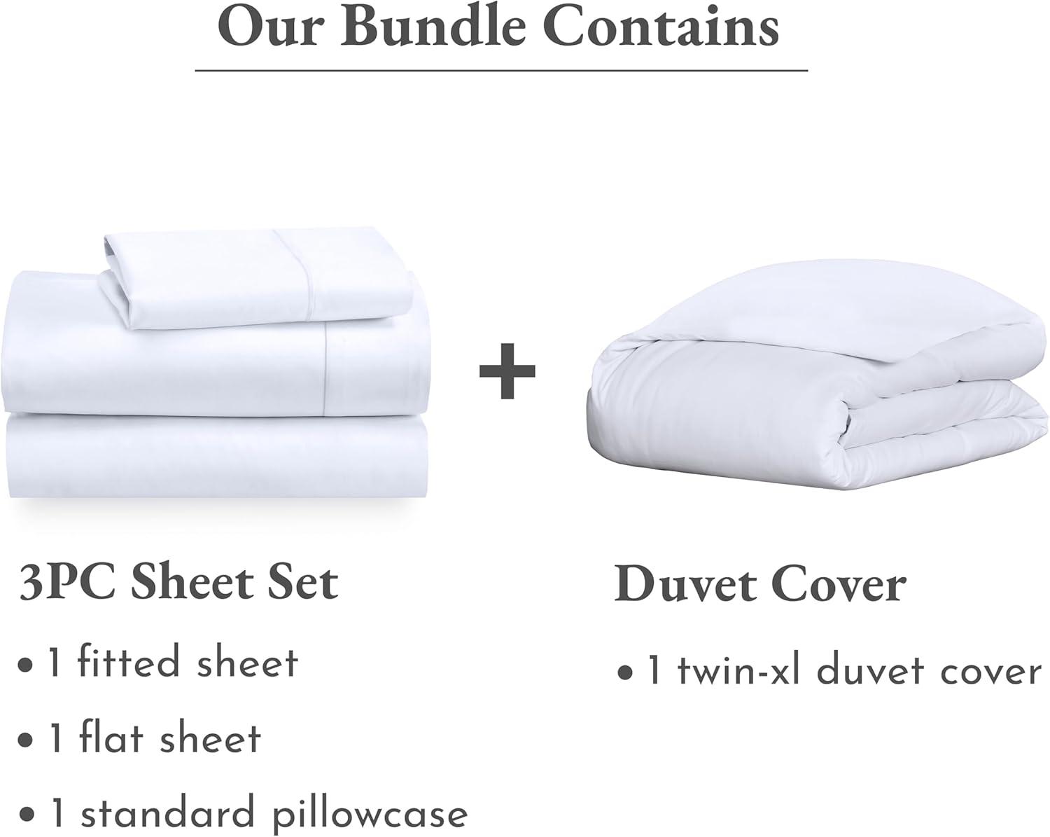 California Design Den 4-Piece Twin XL Size Dorm Bedding Bundle - 1 Sheet Set & 1 Duvet Cover - 400 Thread Count - 100% Cotton Sateen - White