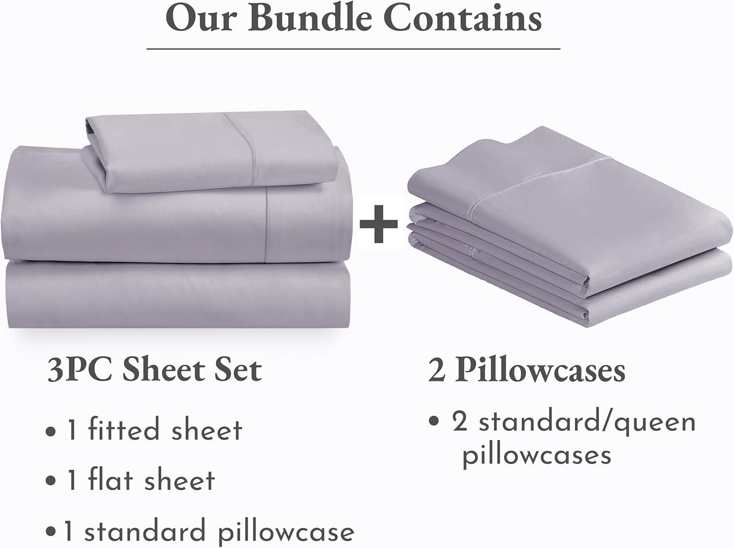 California Design Den 5 Piece Twin Size Sheet Set with 3 Pillowcases, 400 Thread Count 100% Cotton Sateen (Dusky Lavender Gray)