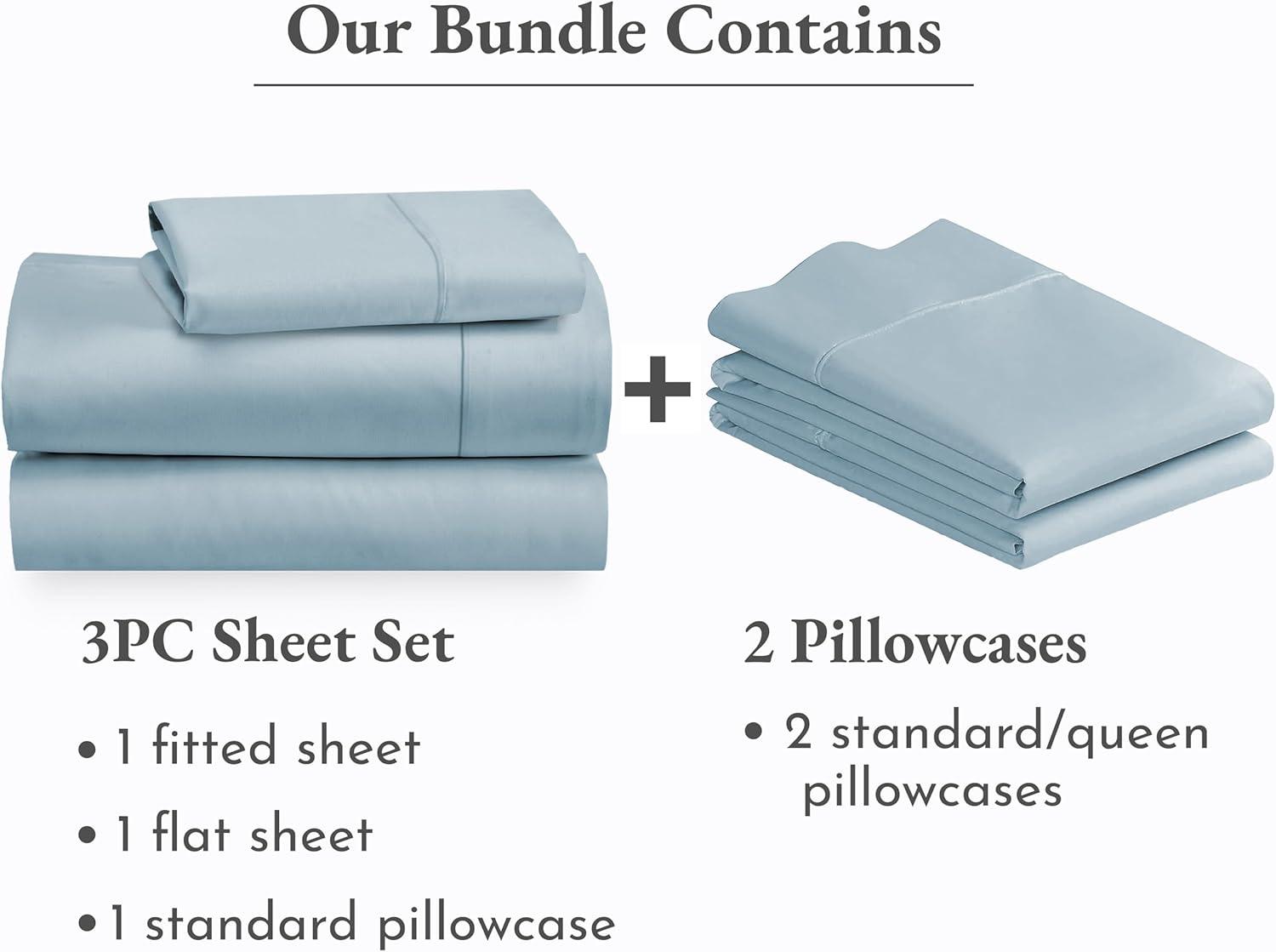 California Design Den 5 Piece Twin Size Sheet Set with 3 Pillowcases, 400 Thread Count 100% Cotton Sateen (Sky Blue)