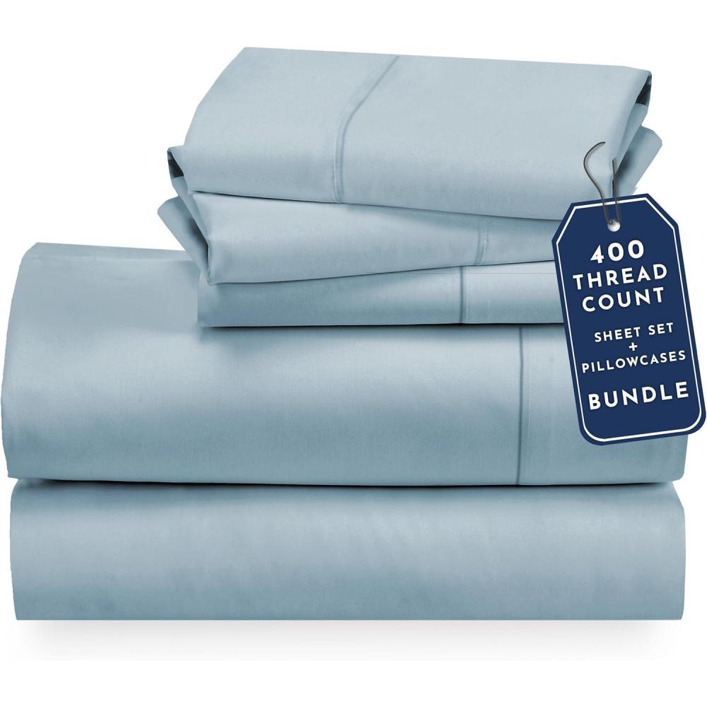 imageCalifornia Design Den 5 Piece Twin Size Sheet Set with 3 Pillowcases 400 Thread Count 100 Cotton Sateen Sky Blue