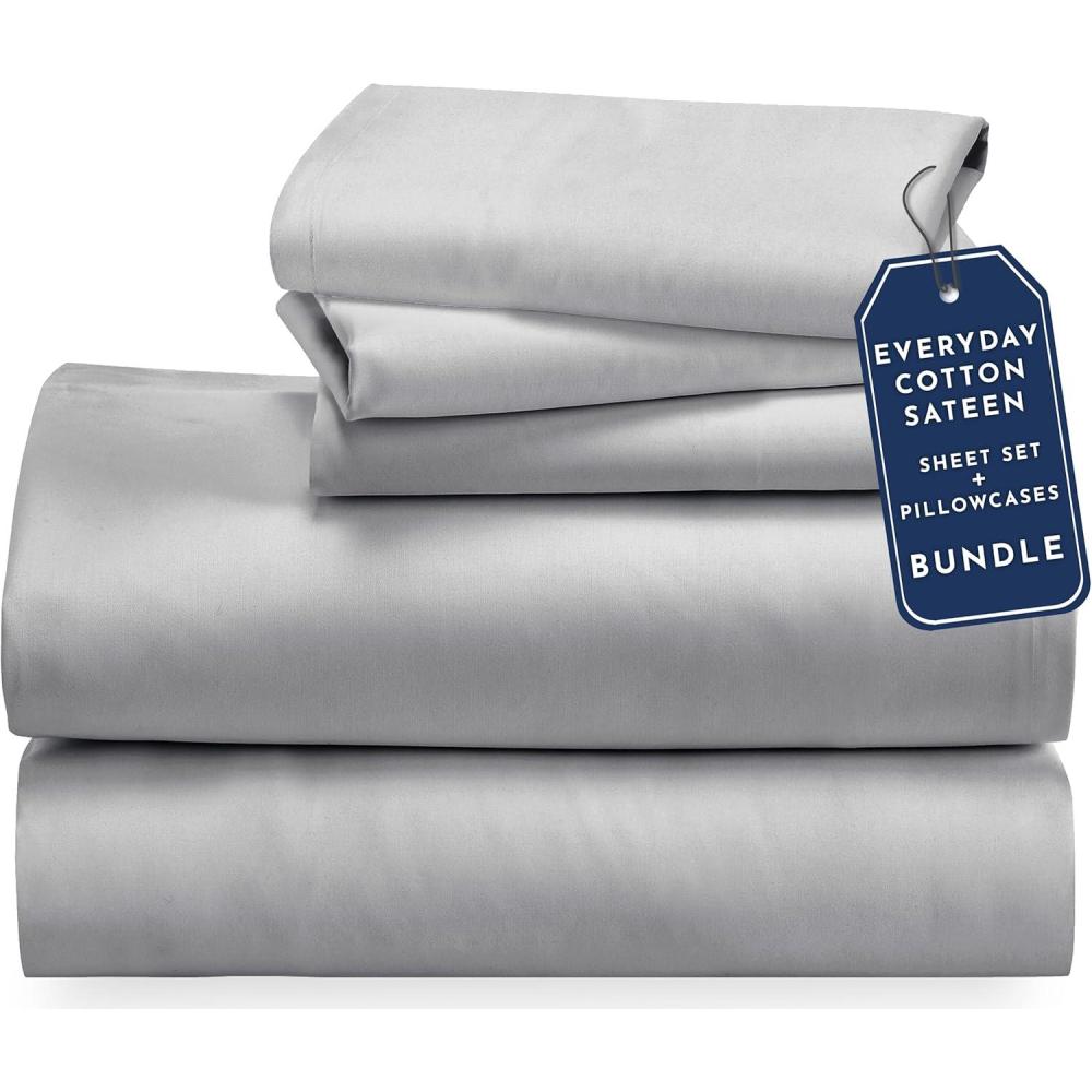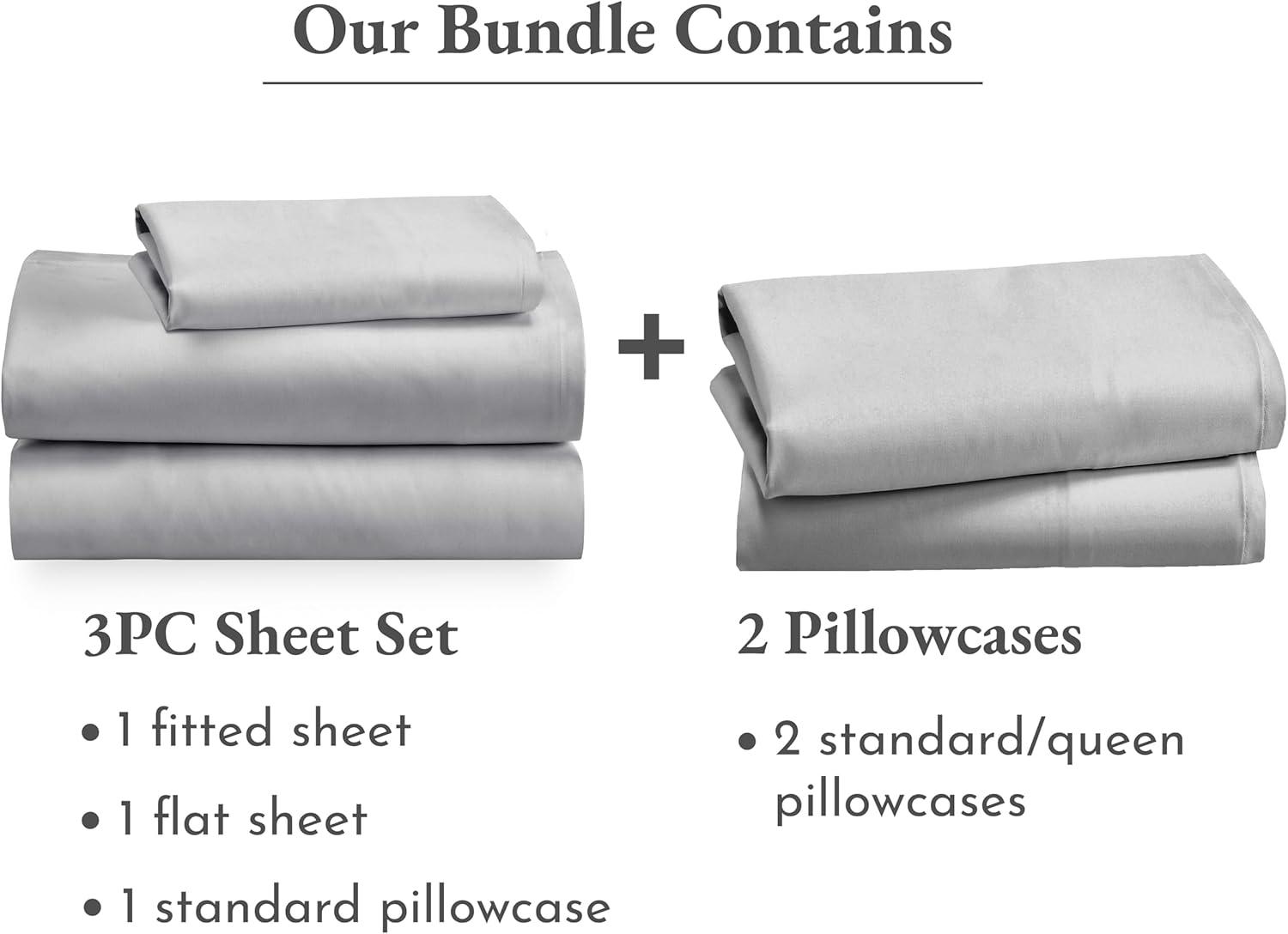 California Design Den 5 Piece Twin Size Sheet Set with 3 Pillowcases – Soft 100% Cotton Sateen (Light Grey)