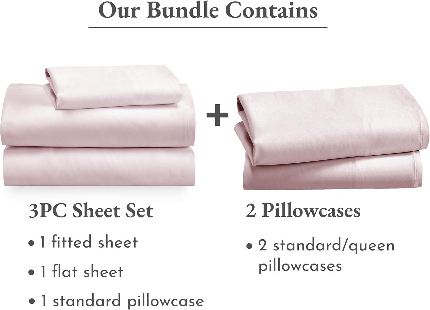 California Design Den 5 Piece Twin Size Sheet Set with 3 Pillowcases - Soft 100% Cotton Sateen (Pink)