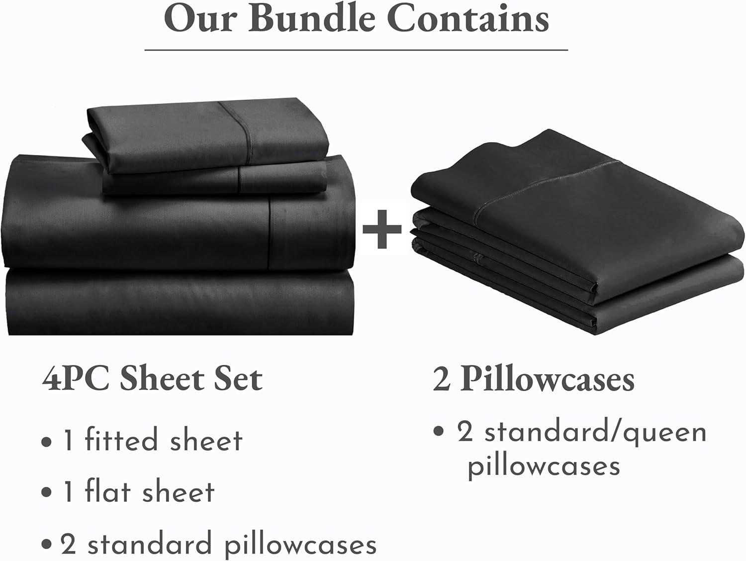California Design Den 6 Piece Full Size Sheet Set with 4 Pillowcases, 400 Thread Count 100% Cotton Sateen (Black)