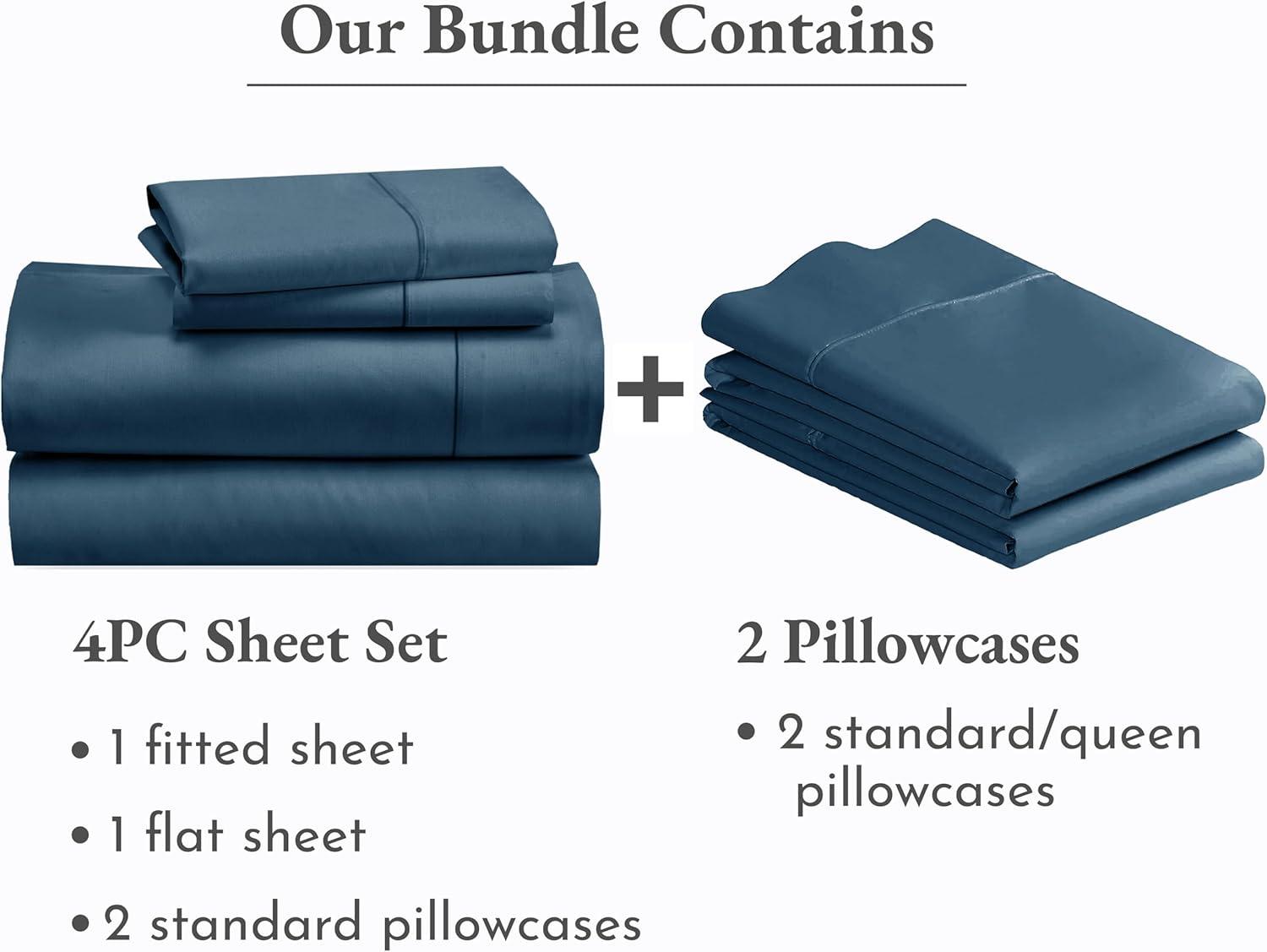 California Design Den 6 Piece Full Size Sheet Set with 4 Pillowcases, 400 Thread Count 100% Cotton Sateen (Peacock Blue)
