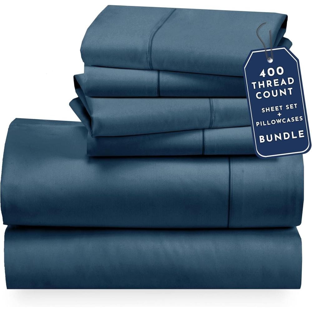 imageCalifornia Design Den 6 Piece Full Size Sheet Set with 4 Pillowcases 400 Thread Count 100 Cotton Sateen Peacock Blue