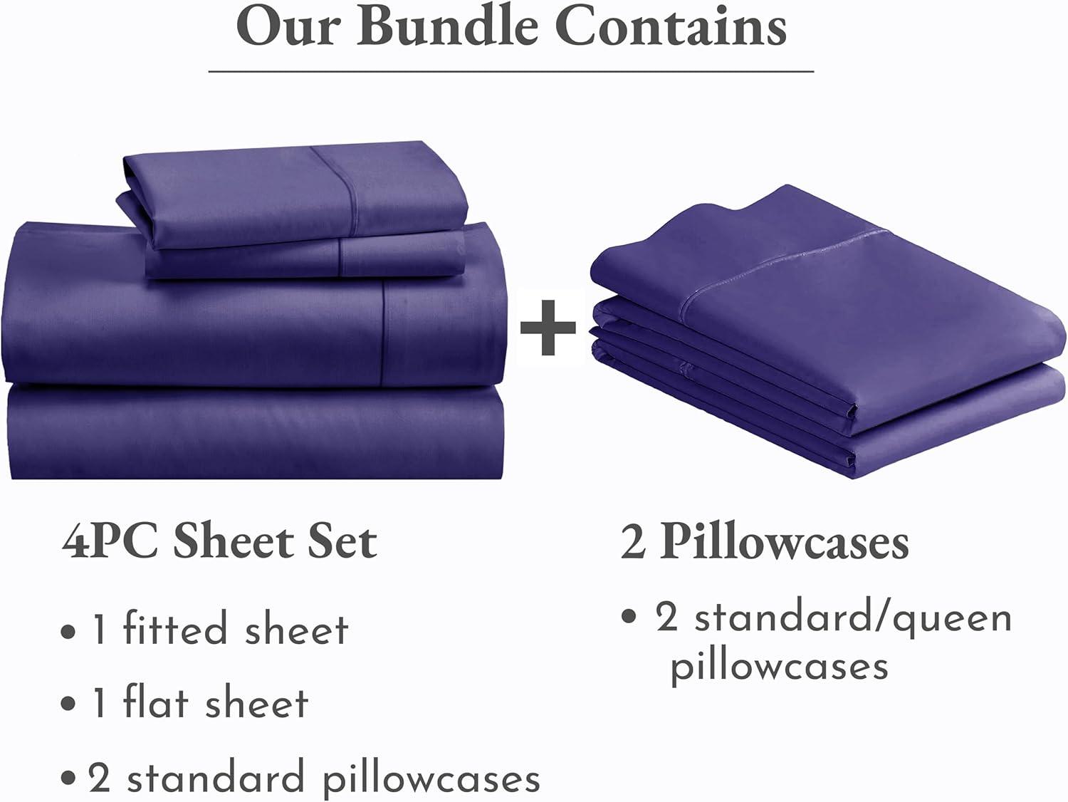 California Design Den 6 Piece Full Size Sheet Set with 4 Pillowcases, 400 Thread Count 100% Cotton Sateen (Purple)