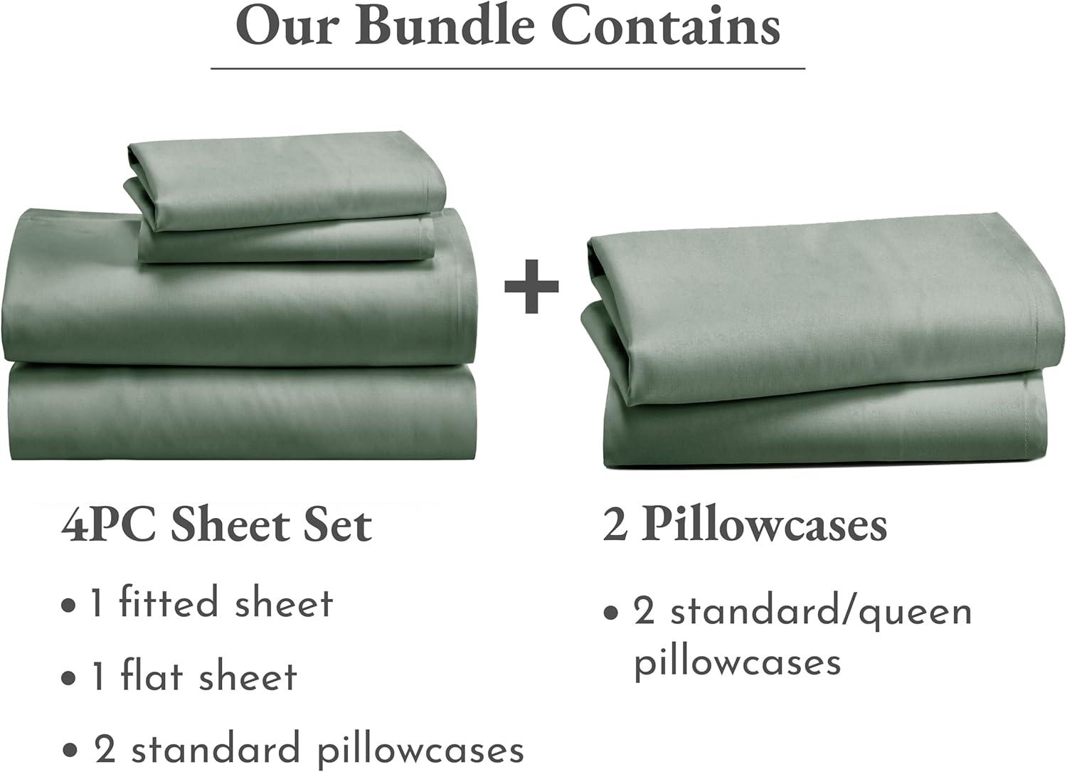 California Design Den 6 Piece Full Size Sheet Set with 4 Pillowcases - Soft 100% Cotton Sateen (Sage Green - Dark)