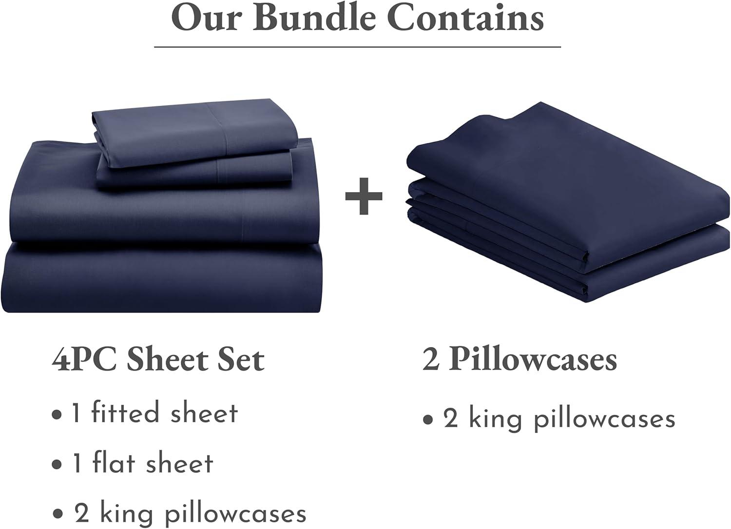 California Design Den 6 Piece King Size Sheet Set with 4 Pillowcases - 1000 Thread Count 100% Cotton Sateen (Navy Blue)