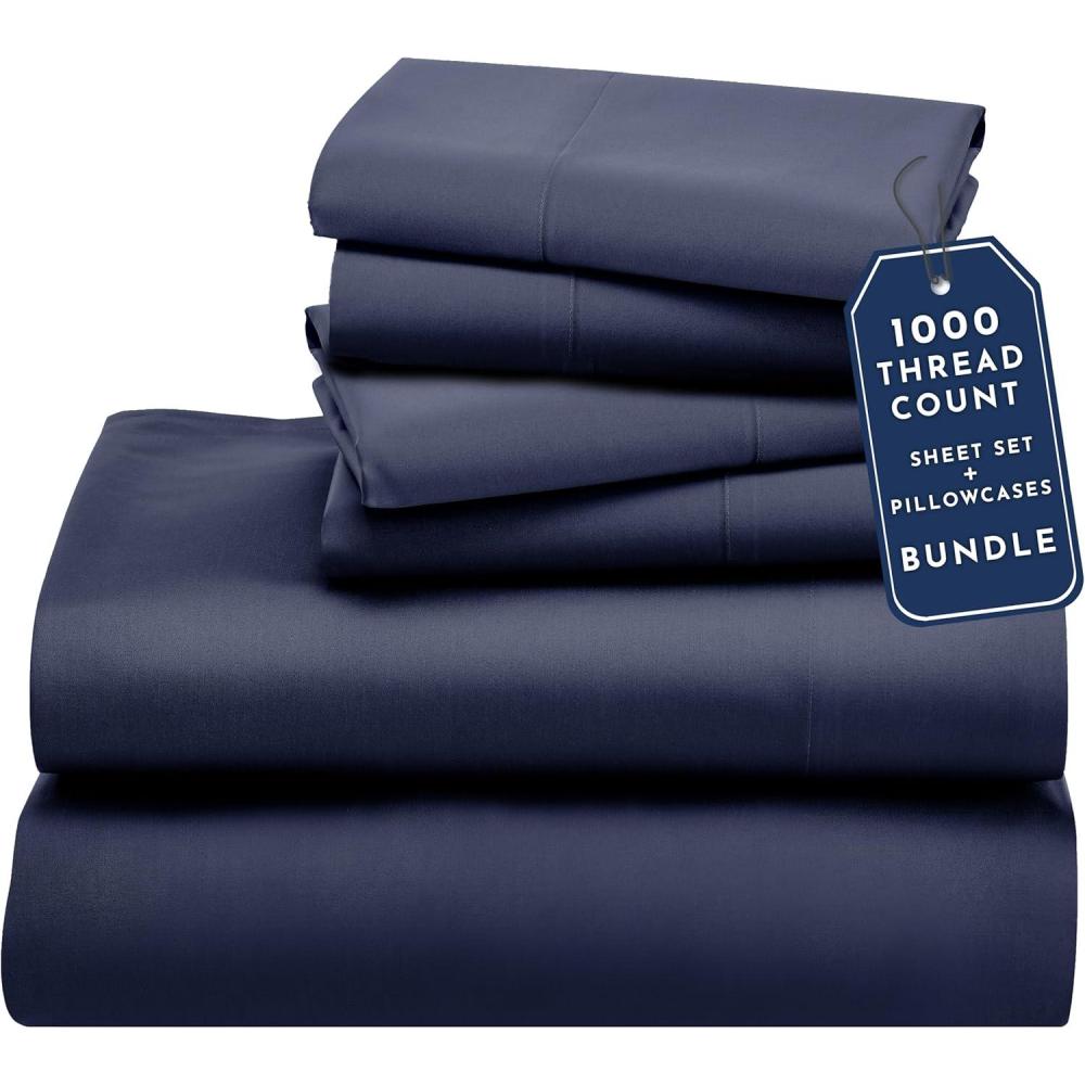 imageCalifornia Design Den 6 Piece King Size Sheet Set with 4 Pillowcases  1000 Thread Count 100 Cotton Sateen Navy Blue
