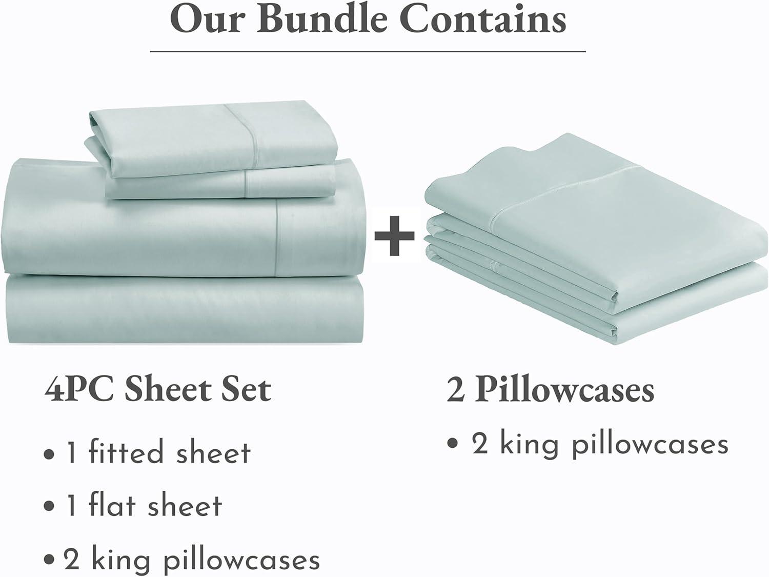 imageCalifornia Design Den 6 Piece King Size Sheet Set with 4 Pillowcases 400 Thread Count 100 Cotton Sateen Seafoam