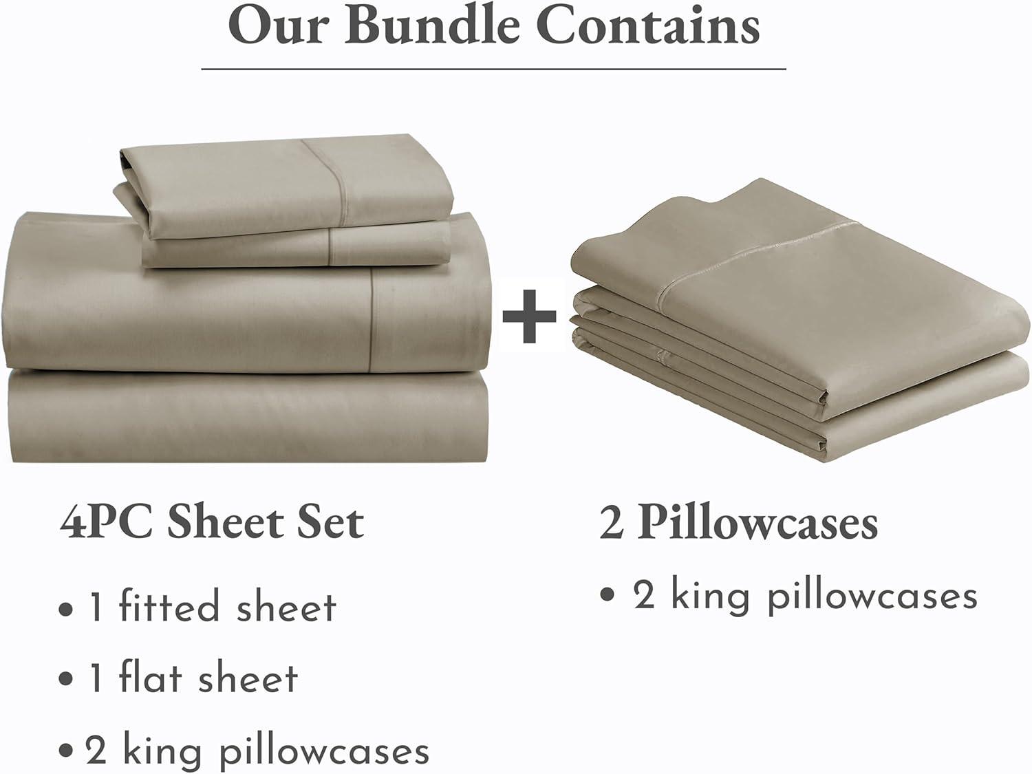 California Design Den 6 Piece King Size Sheet Set with 4 Pillowcases, 400 Thread Count 100% Cotton Sateen (Taupe)