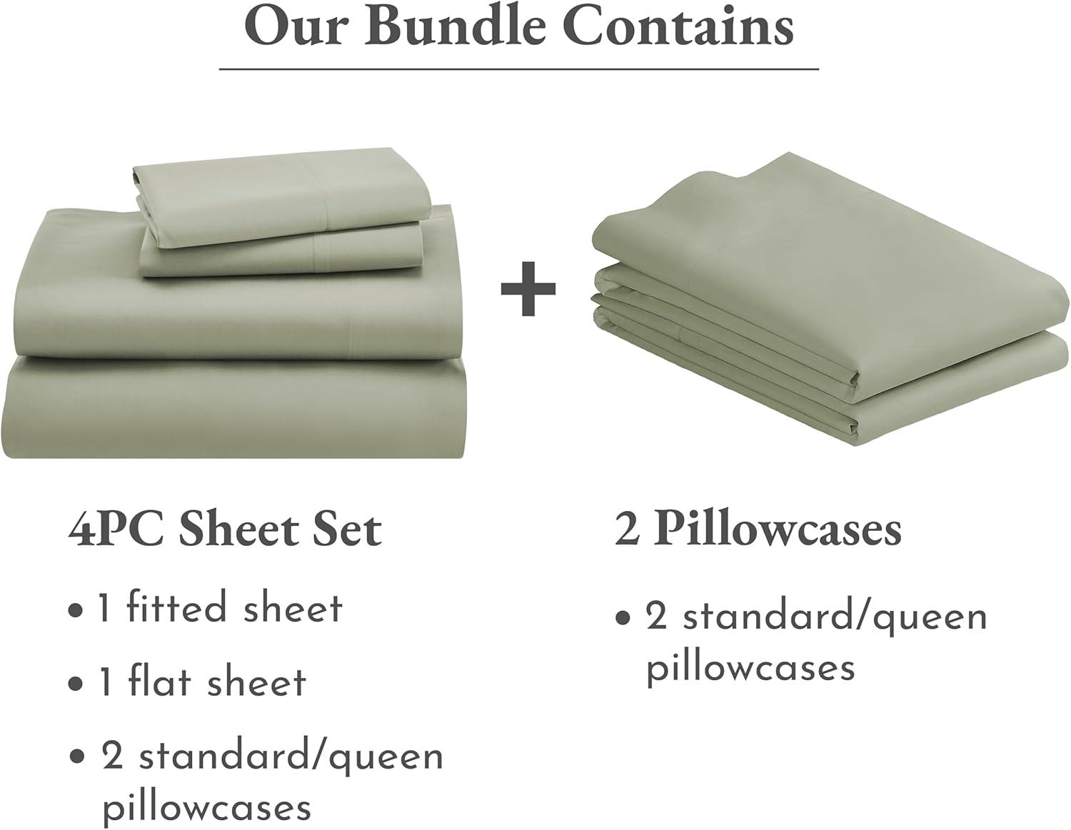 California Design Den 6 Piece Queen Size Sheet Set with 4 Pillowcases - 1000 Thread Count 100% Cotton Sateen (Sage Green)
