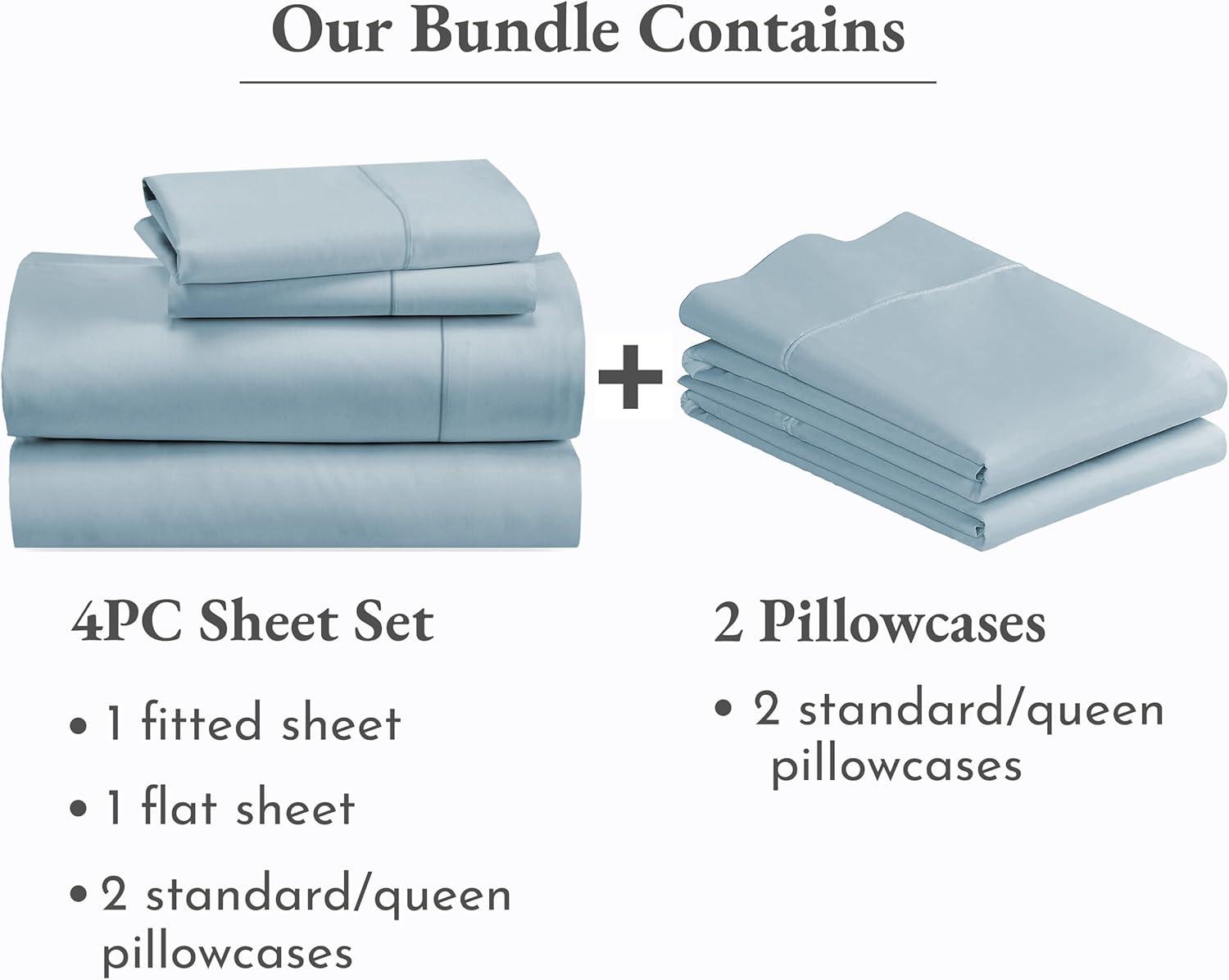 California Design Den 6 Piece Queen Size Sheet Set with 4 Pillowcases, 400 Thread Count 100% Cotton Sateen (Sky Blue)