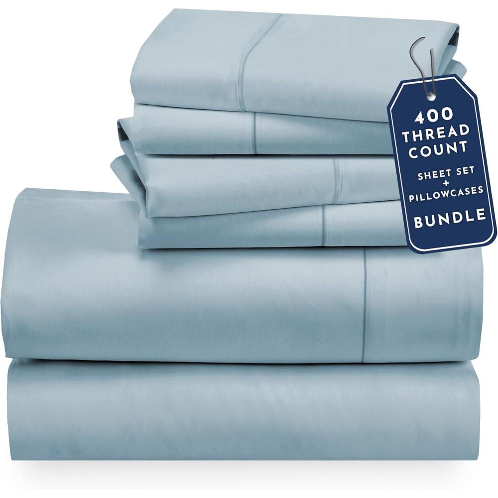 imageCalifornia Design Den 6 Piece Queen Size Sheet Set with 4 Pillowcases 400 Thread Count 100 Cotton Sateen Sky Blue