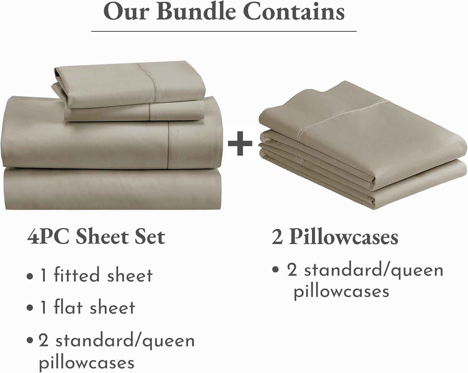 California Design Den 6 Piece Queen Size Sheet Set with 4 Pillowcases, 400 Thread Count 100% Cotton Sateen (Taupe)