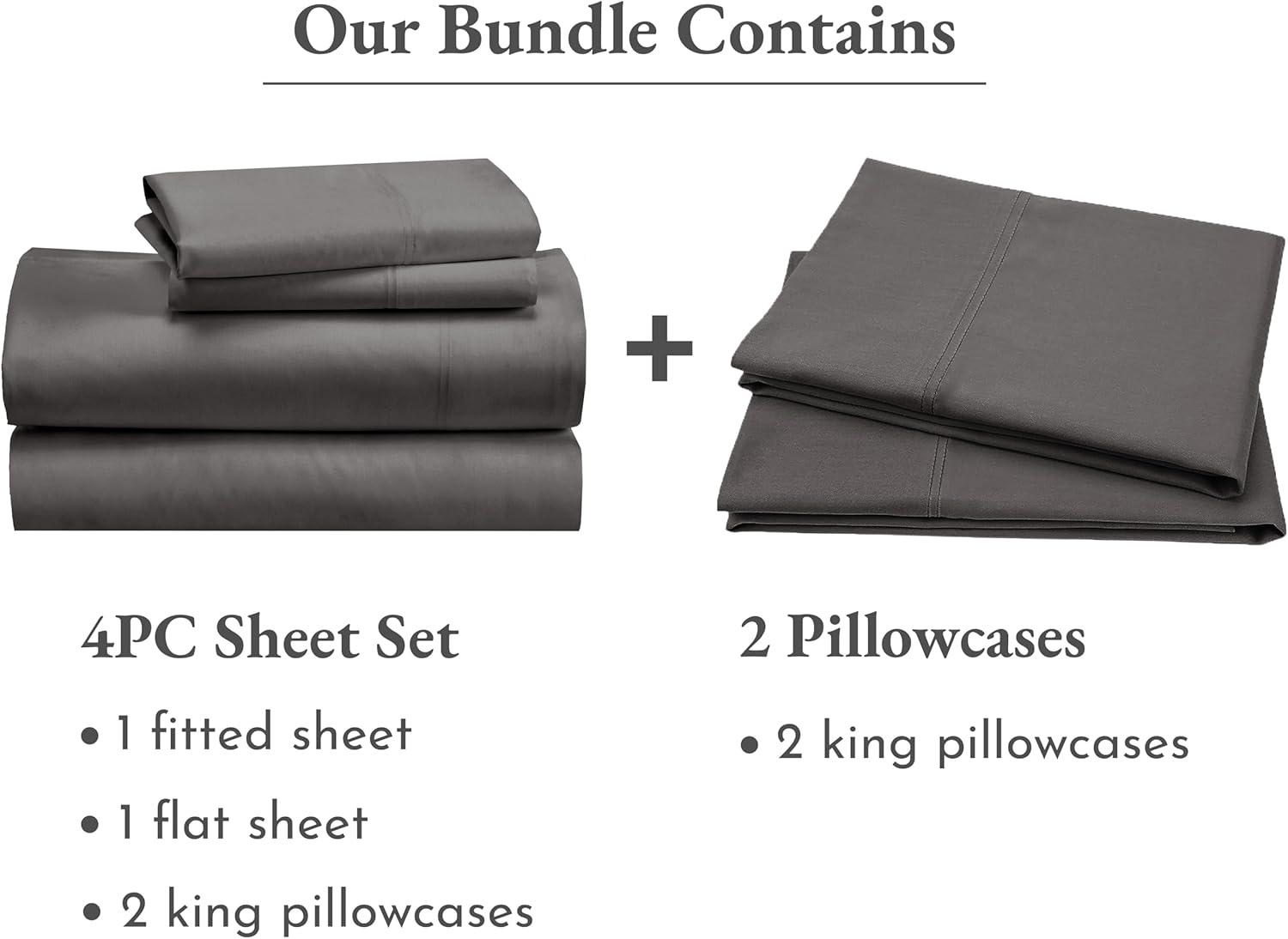 California Design Den Bedding Bundle - Cal King Sheet Set with 4 Pillowcases, 100% Organic Cotton Percale (Grey)