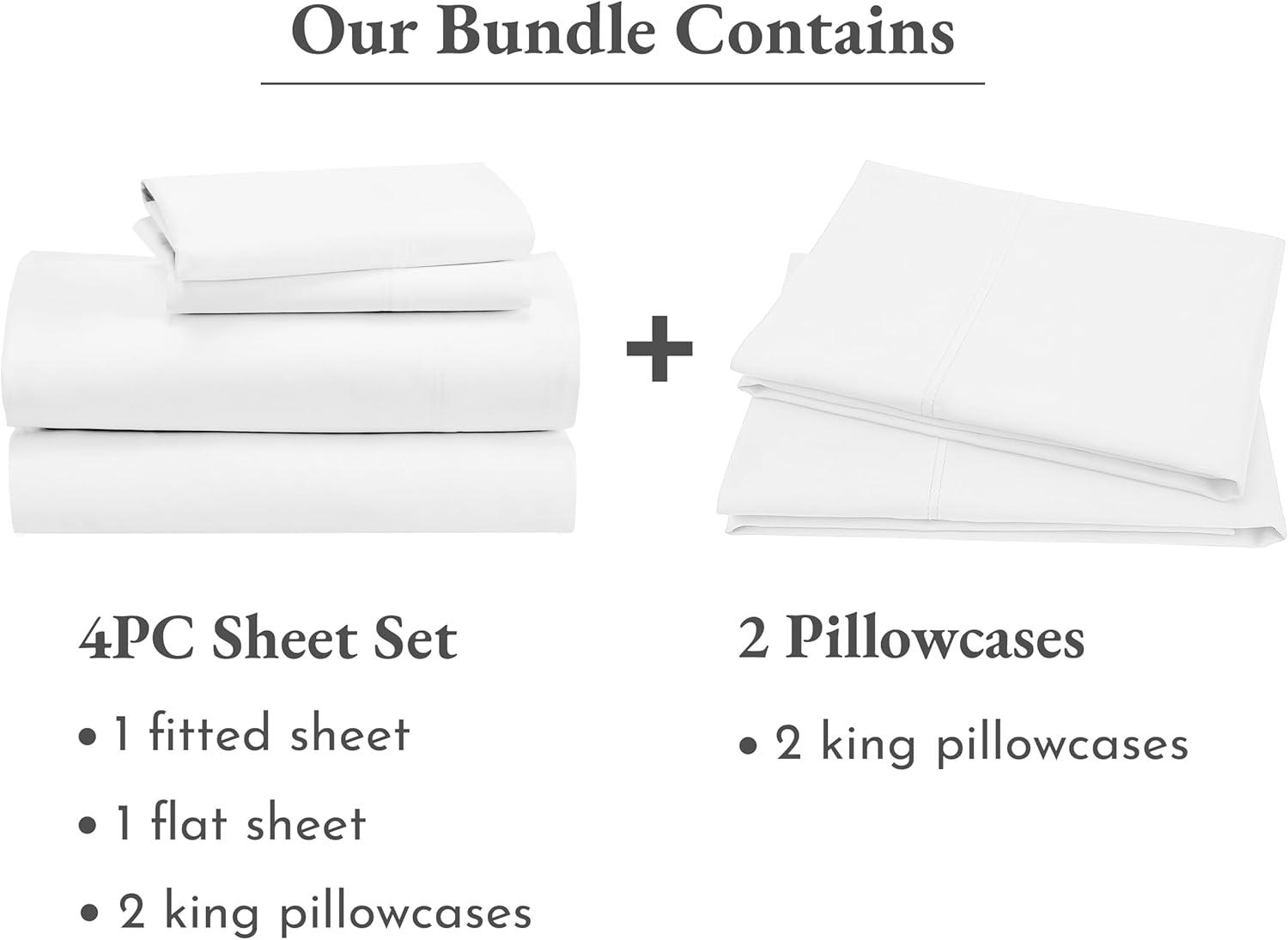 California Design Den Bedding Bundle - Cal King Sheet Set with 4 Pillowcases, 100% Organic Cotton Percale (White)