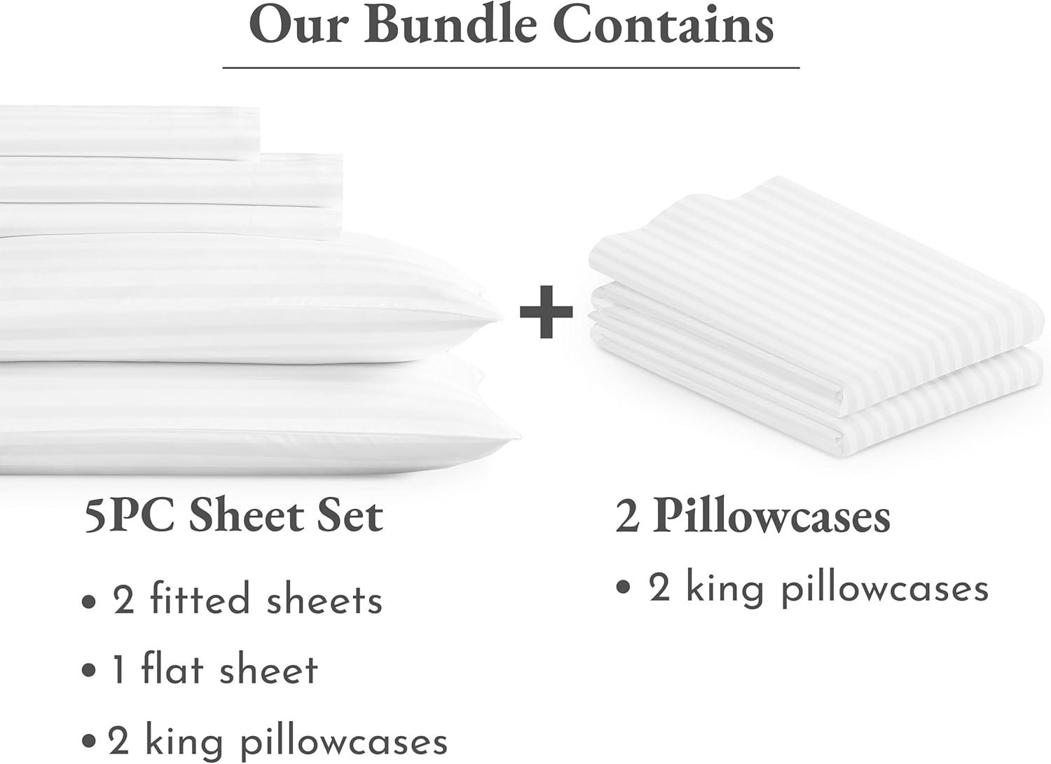 California Design Den Bedding Bundle - Split King Striped Sheet Set with 3 Pillowcases, 500 Thread Count, 100% Cotton Sateen (White Striped)