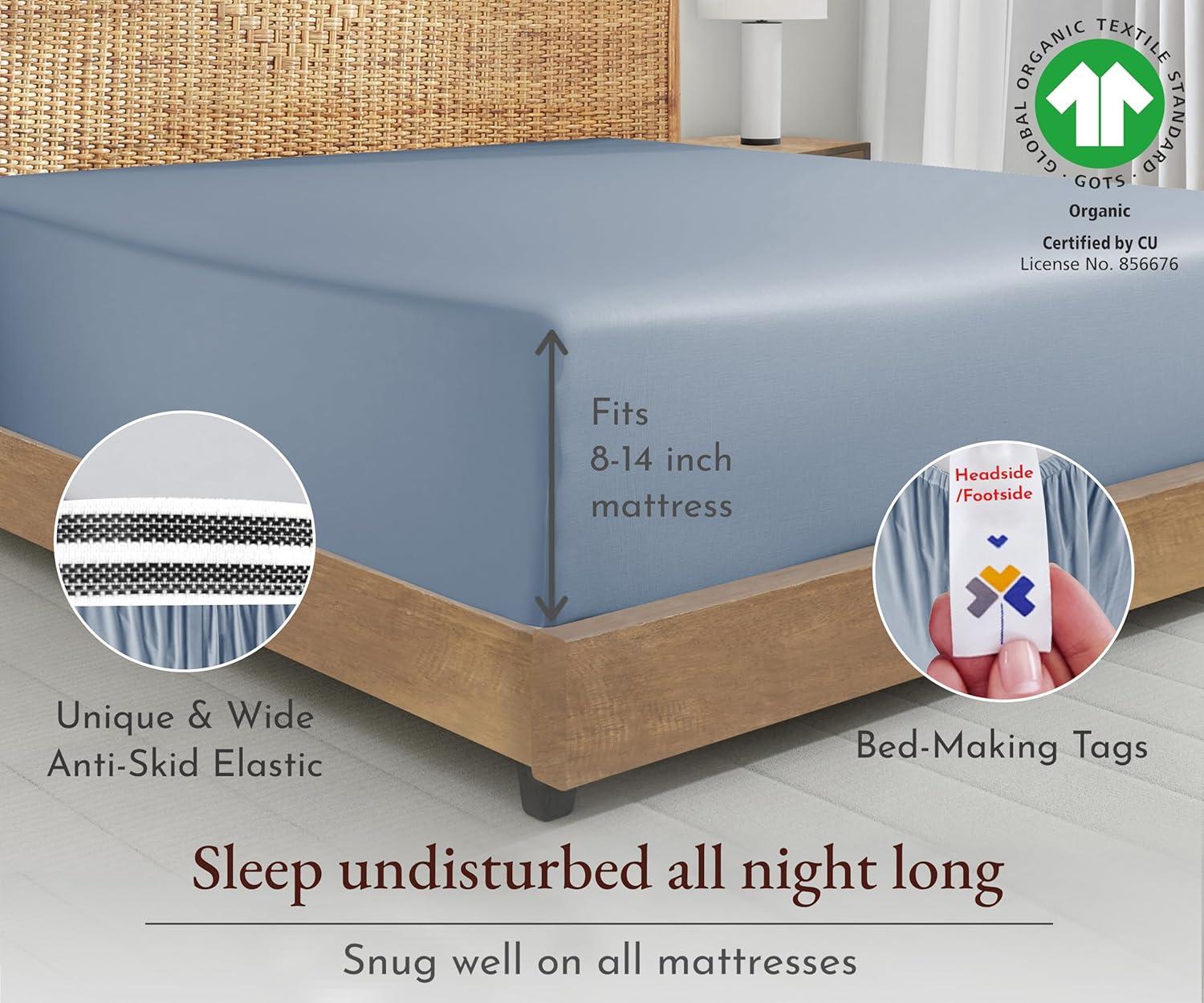 1 PIECE 100% ORGANIC COTTON FITTED SHEET – LIGHTWEIGHT, CRISP & COOLING PERCALE: Made from organically grown cotton, our 300 thread count fitted sheets pass numerous quality checks for its authenticity. They are a GOTS certified product – sustainably made. Percale sheets are breathable, naturally crisp with a matte finish (unlike shiny sateen), ideal for hot sleepers, and soften beautifully with each wash. 1 Cal King Fitted Sheet Only- 72″ W x 84″ L + 15″ deep pockets, fully elasticized.